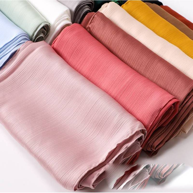 Satin Natural Pleated Scarf Malaysian Women's Scarf