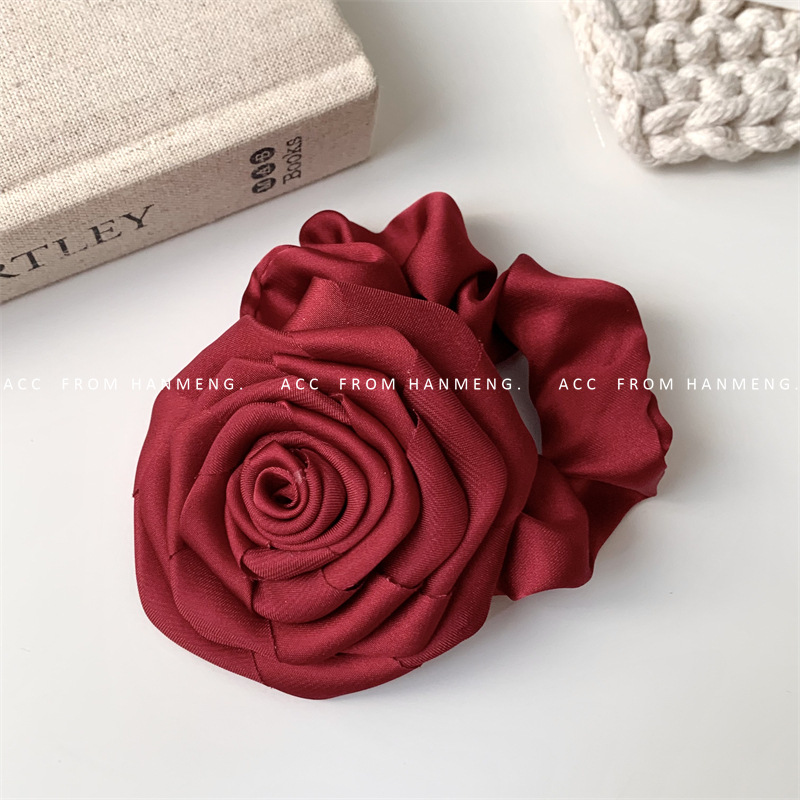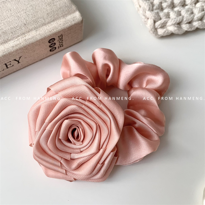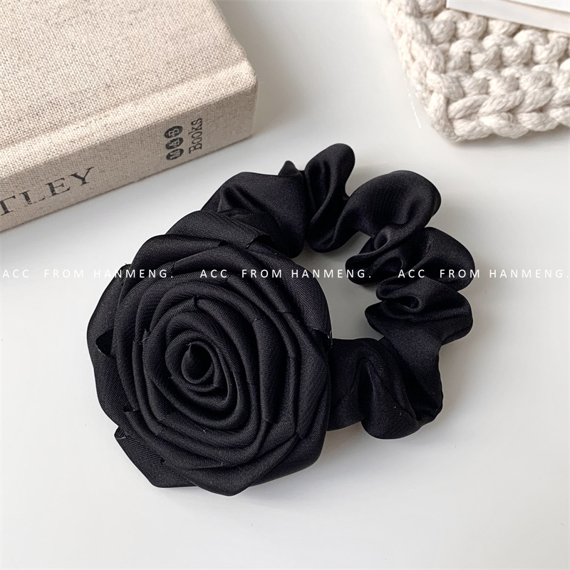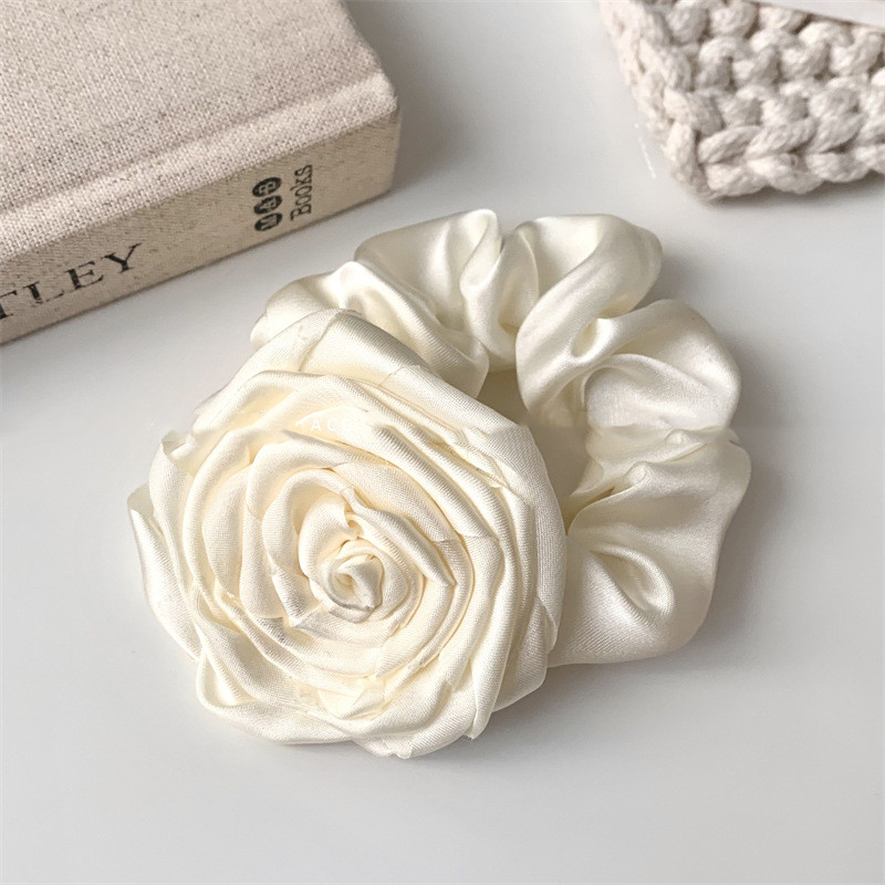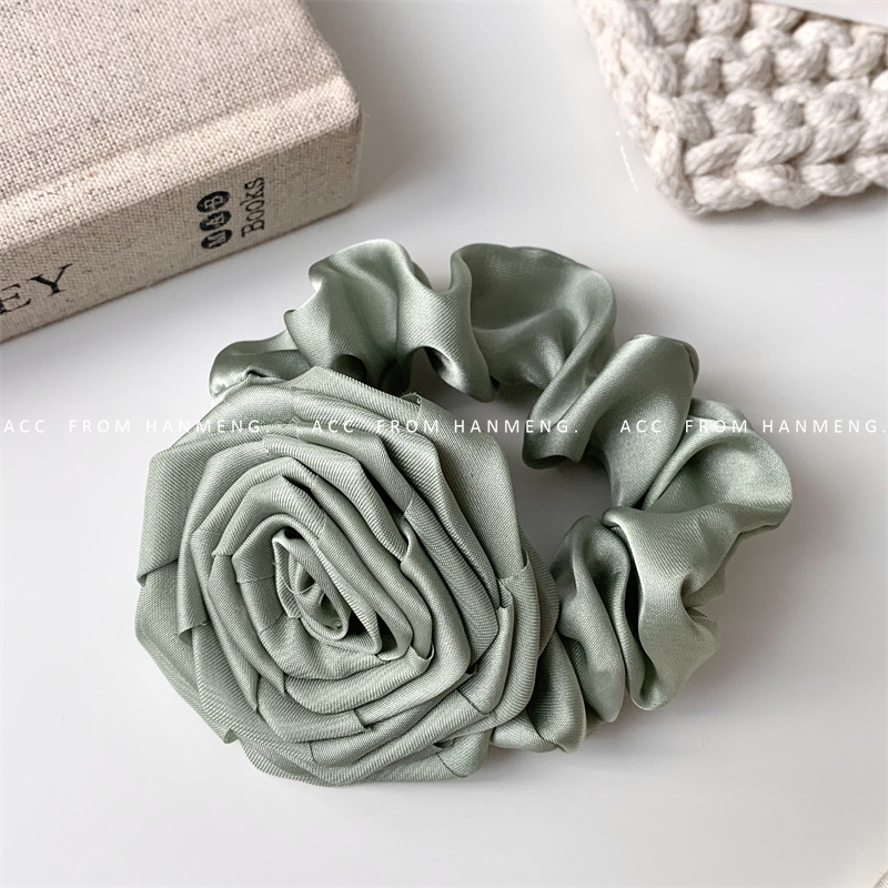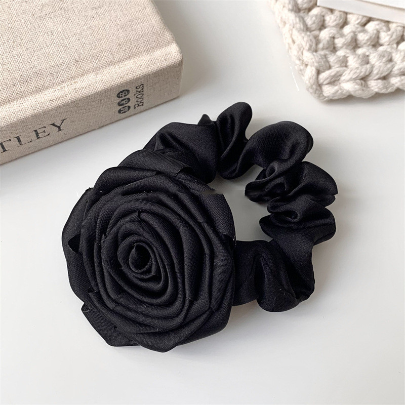 Color: green floral satin hair ring, pink floral satin hair ring, White floral satin hair ring, black floral satin hair ring, wine red floral satin hair ring