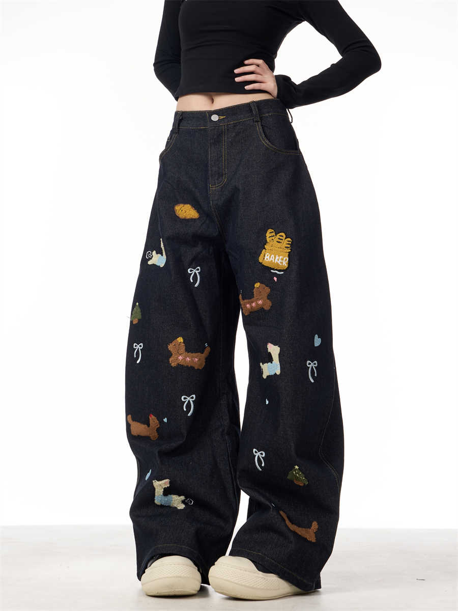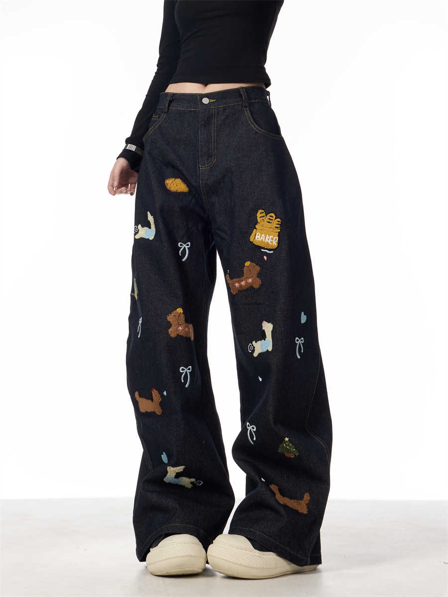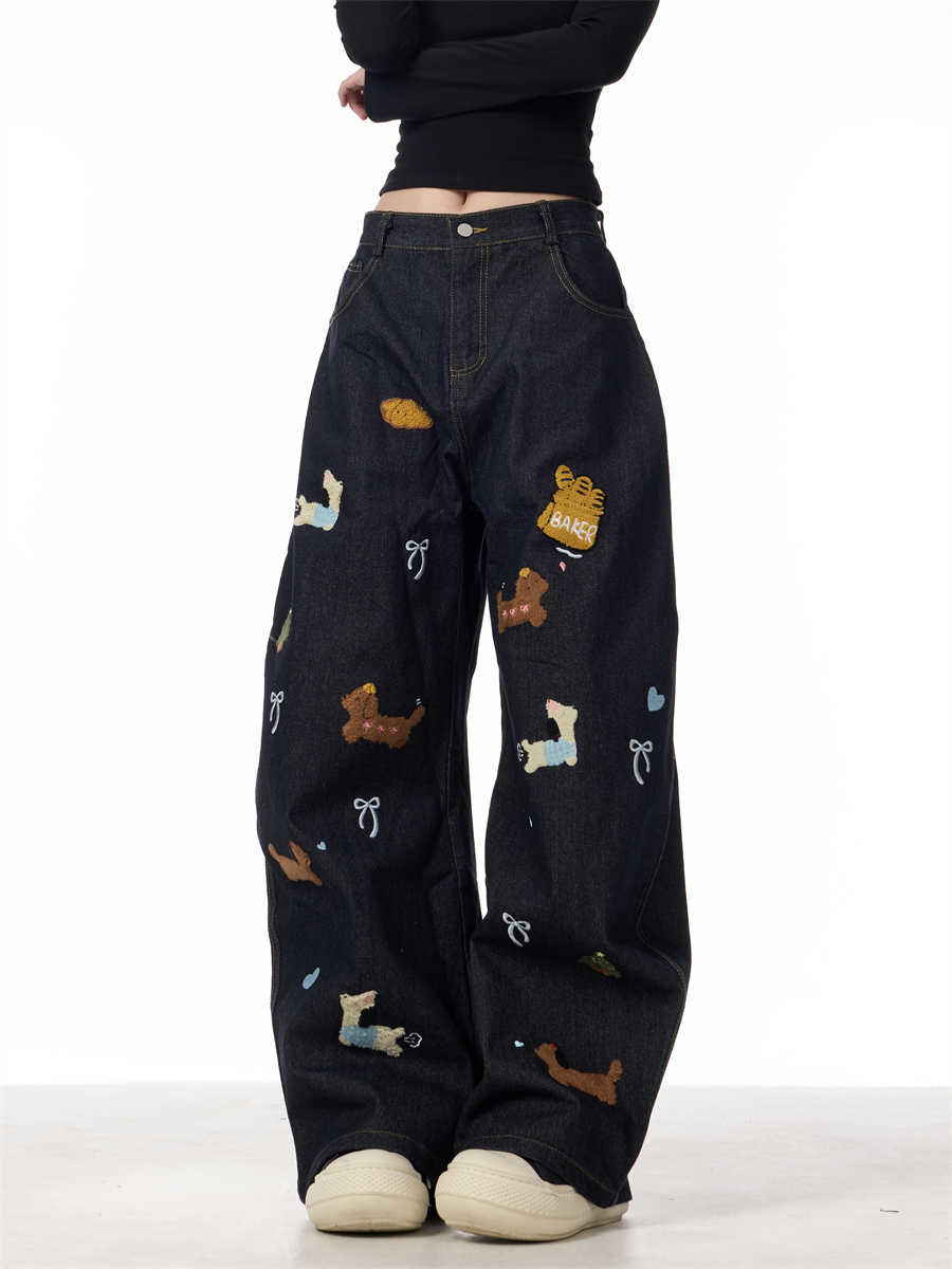 Sausage Dog Patchwork Jeans Women's Loose Casual Wide-leg Pants