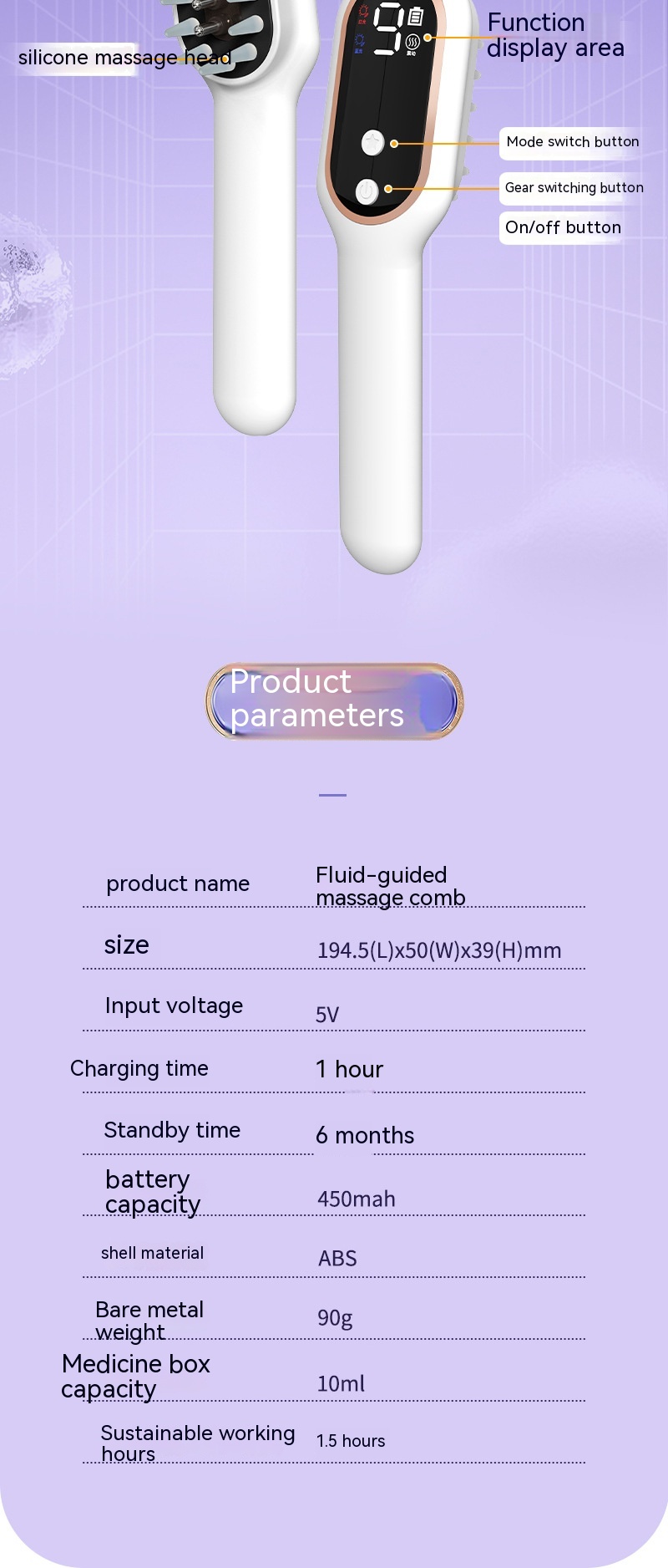 Comb material: TPU soft rubber, 17 comb teeth