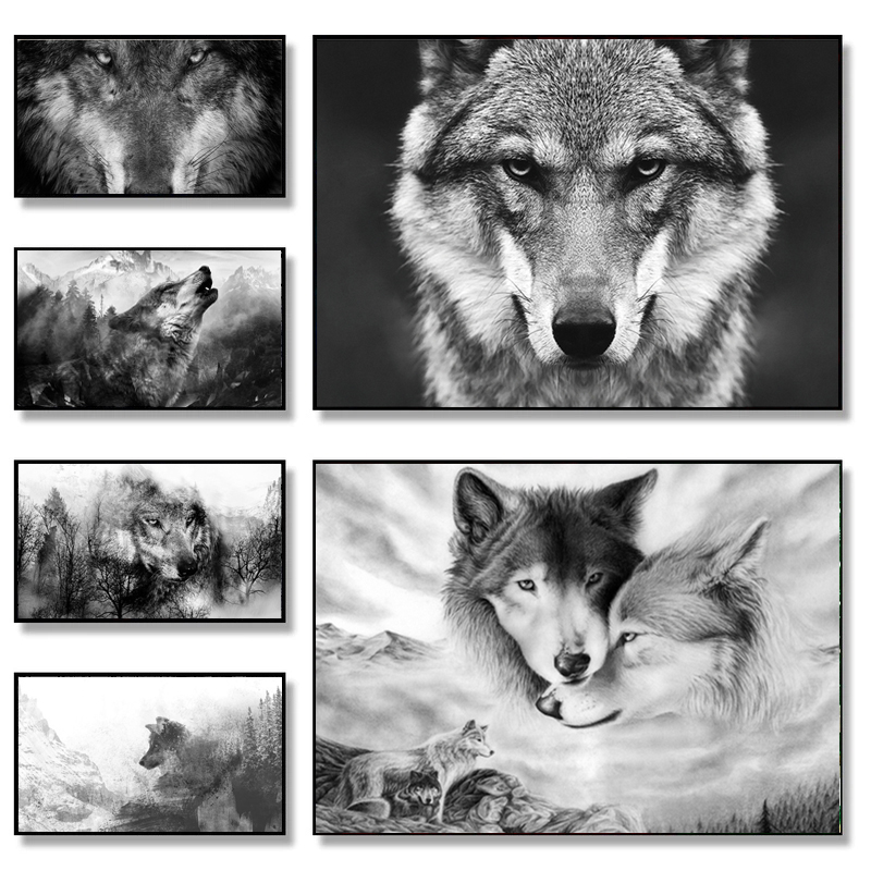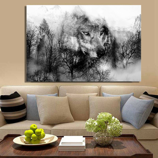 Scandinavian Style Forest Wolf Head Art Poster