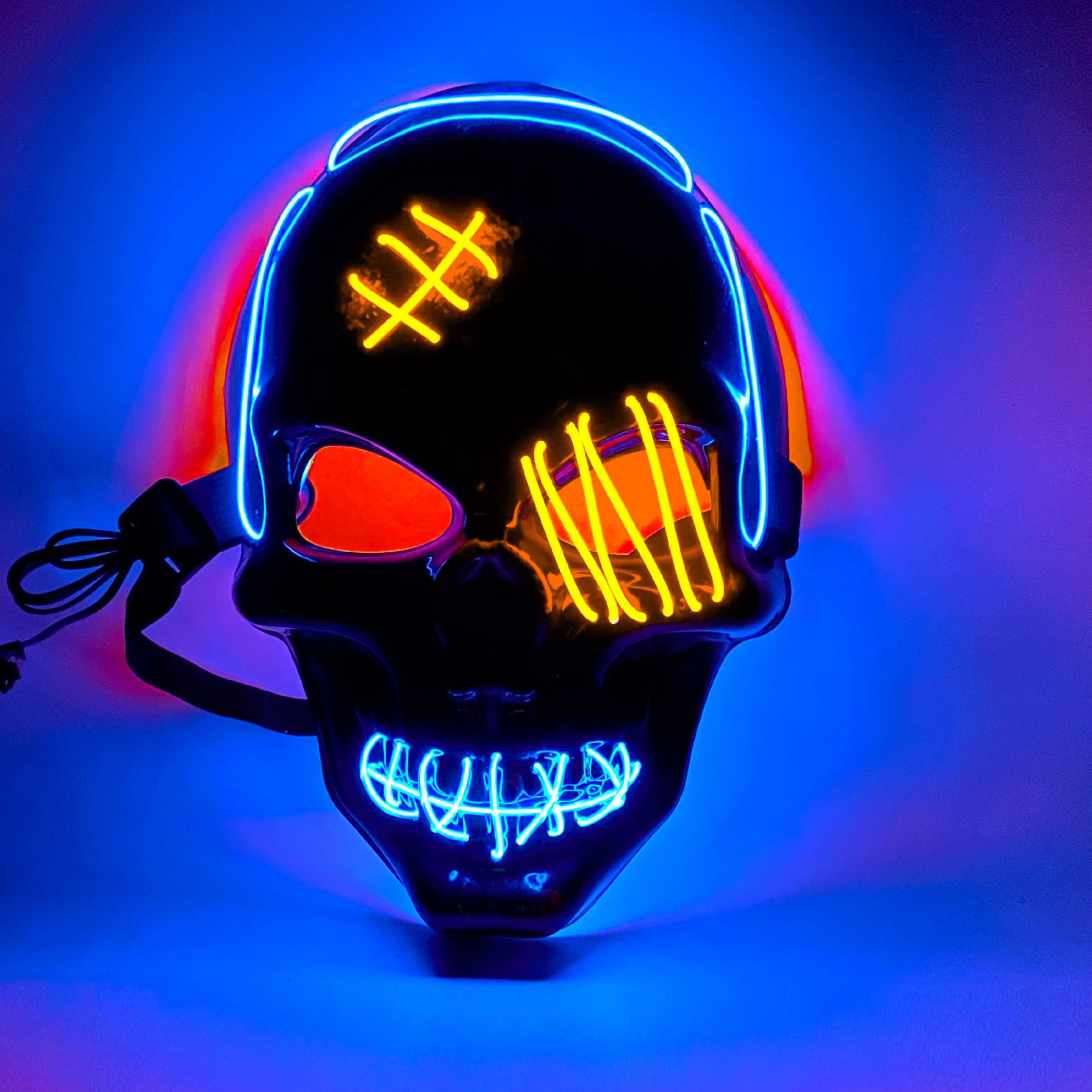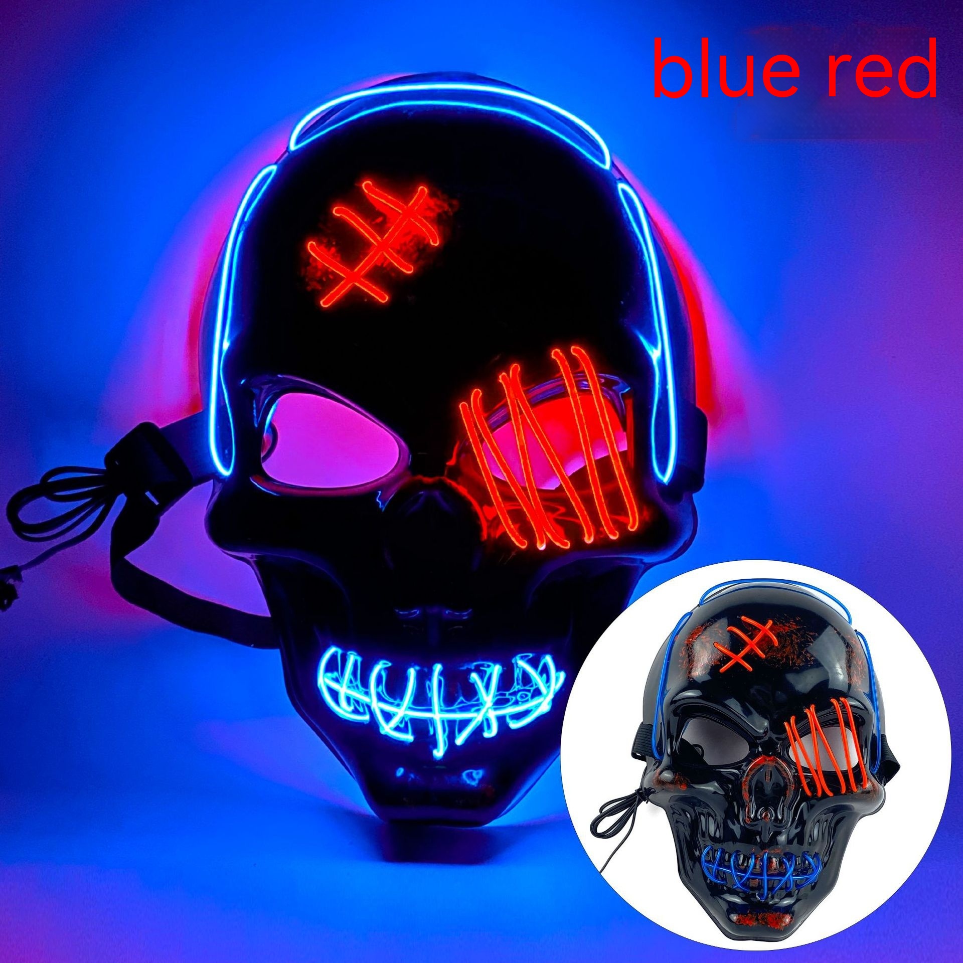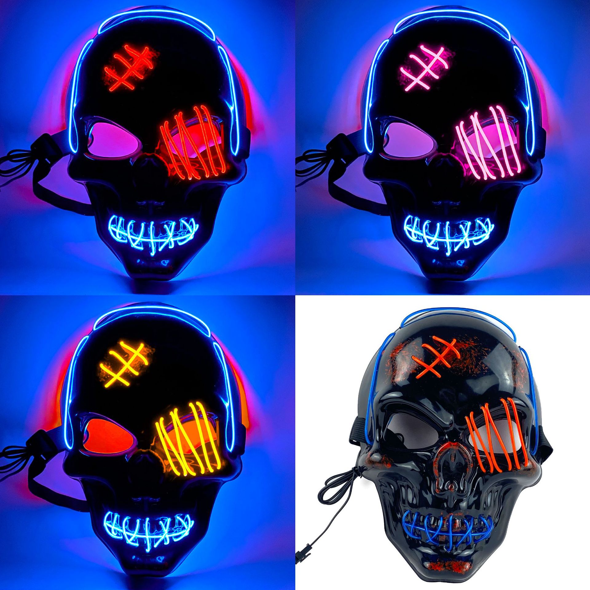 Modeling: two-color blue red scar skull, two-color blue blue orange scar skull, two-color blue pink scar skull, two-color blue yellow scar skull, two-color blue emerald green-scar skull, two-color blue white-scar skull, two-color blue purple-scar skull, two-color blue fluorescent green-scar skull