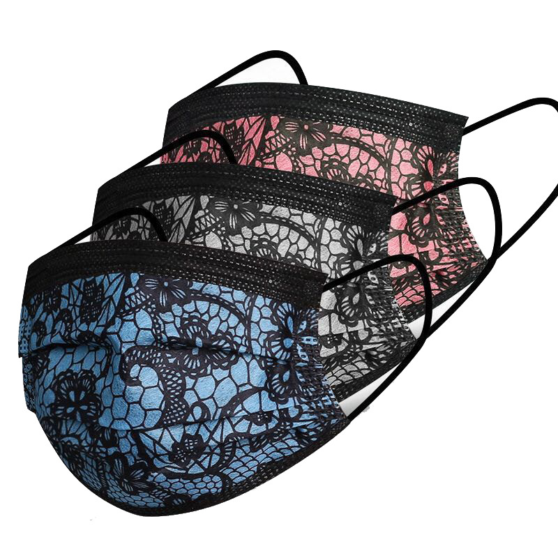 Model: black mesh lace, pink lace, blue lace, black and white lace, purple lace, purple lace on white