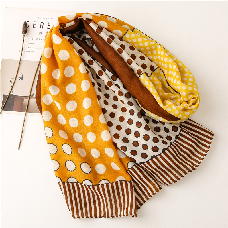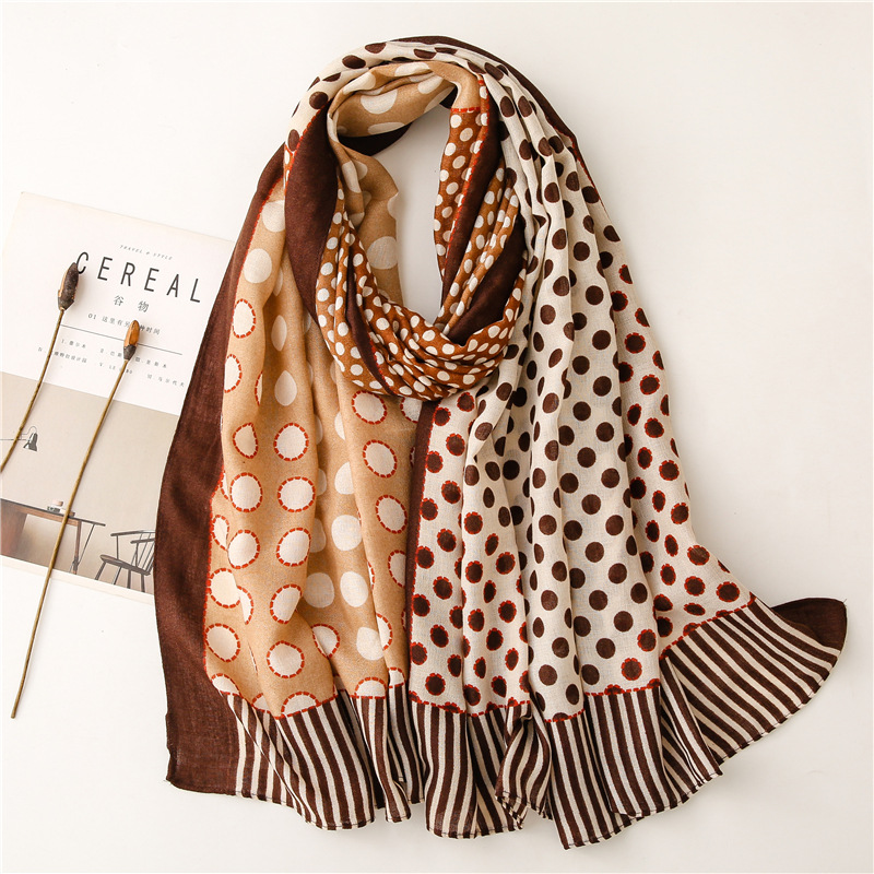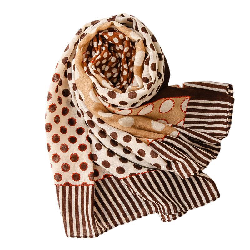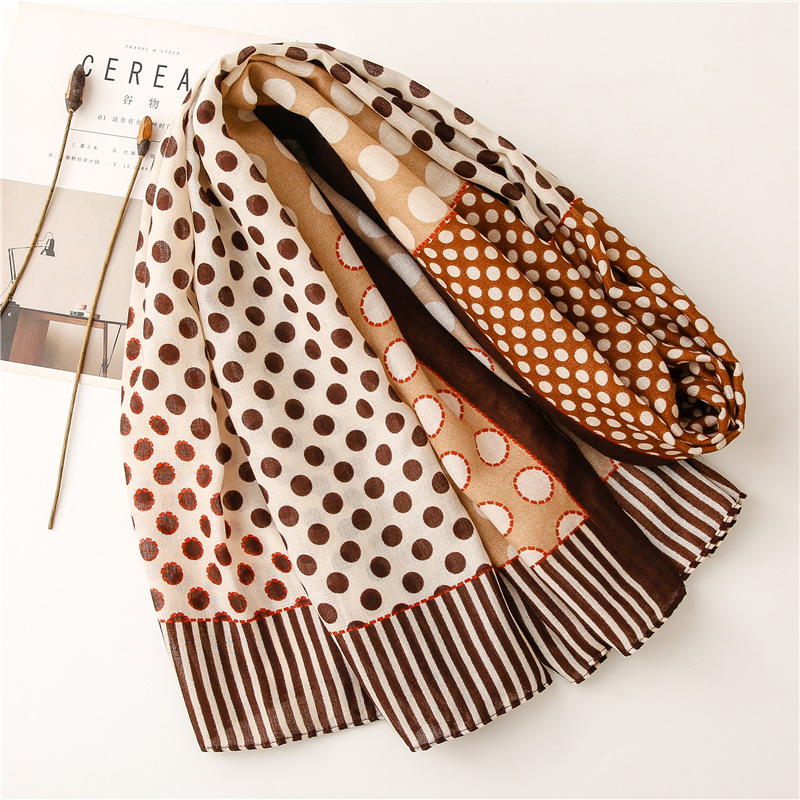 Scarf Literary Retro Small Dot Circle Hit Color Dual-use Cotton And Linen Feel