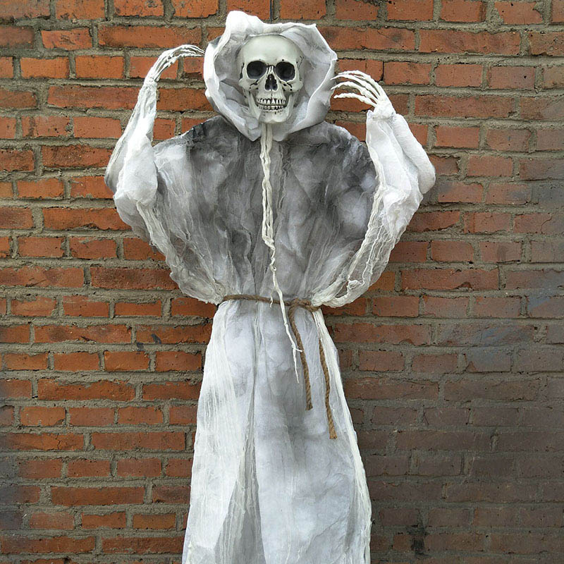 Name: Skeleton ghostHeight: about 170cmMaterial: The skull is made of plastic, cloth, etc