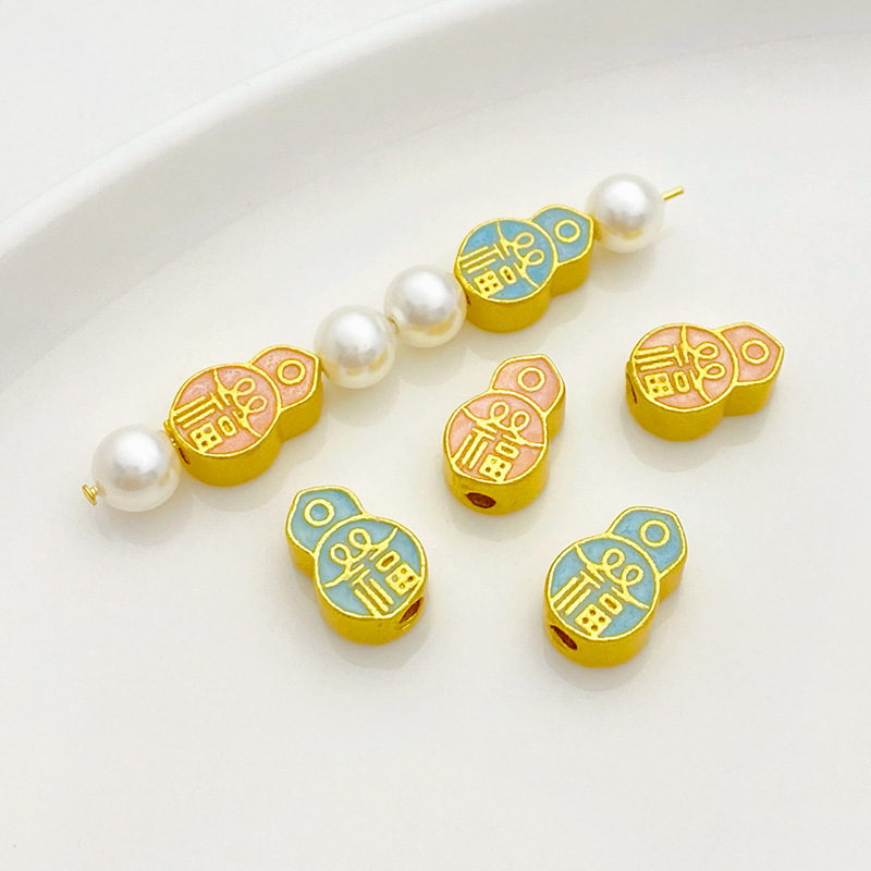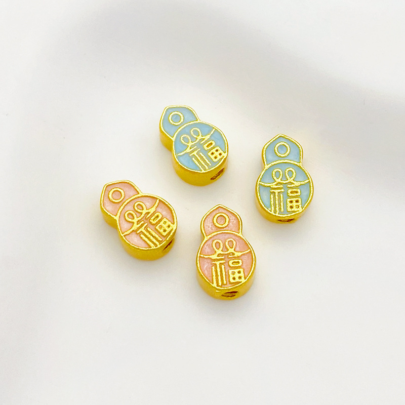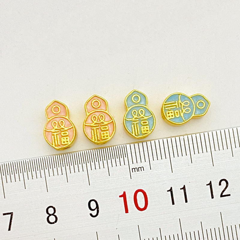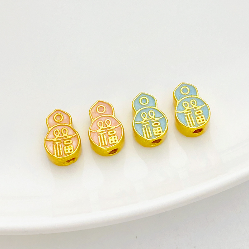 Color: blue fu character gourd spacer beads 11 * 7.5mm 1, pink fu character gourd spacer beads 11 * 7.5mm 1