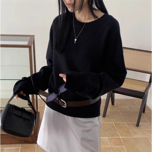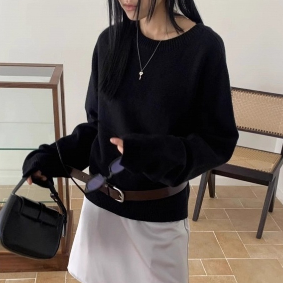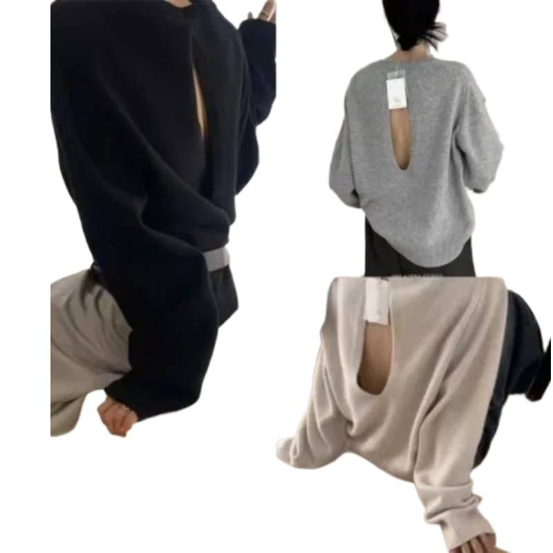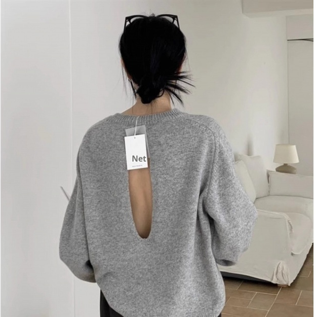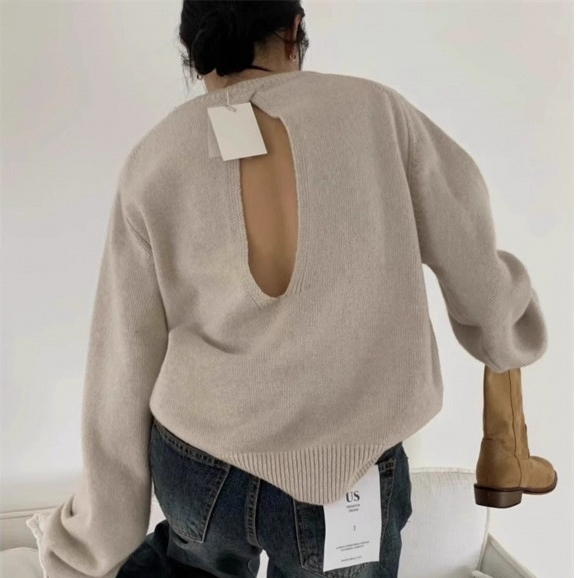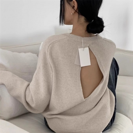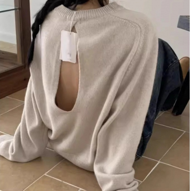 Scheming Hollow Backless Loose Round Neck Knitted Knitting Shirt