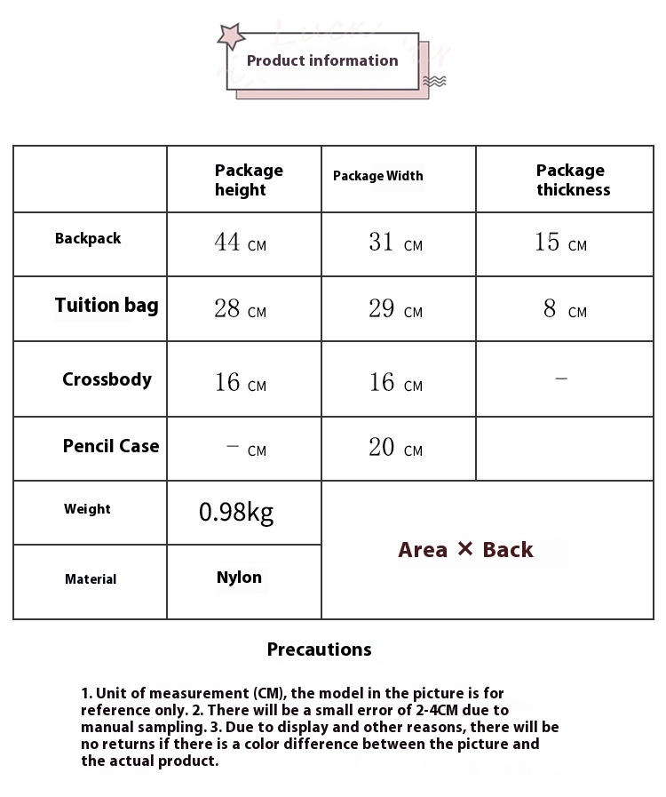 Size: single bag, with pendant, with badge, with badge pendant