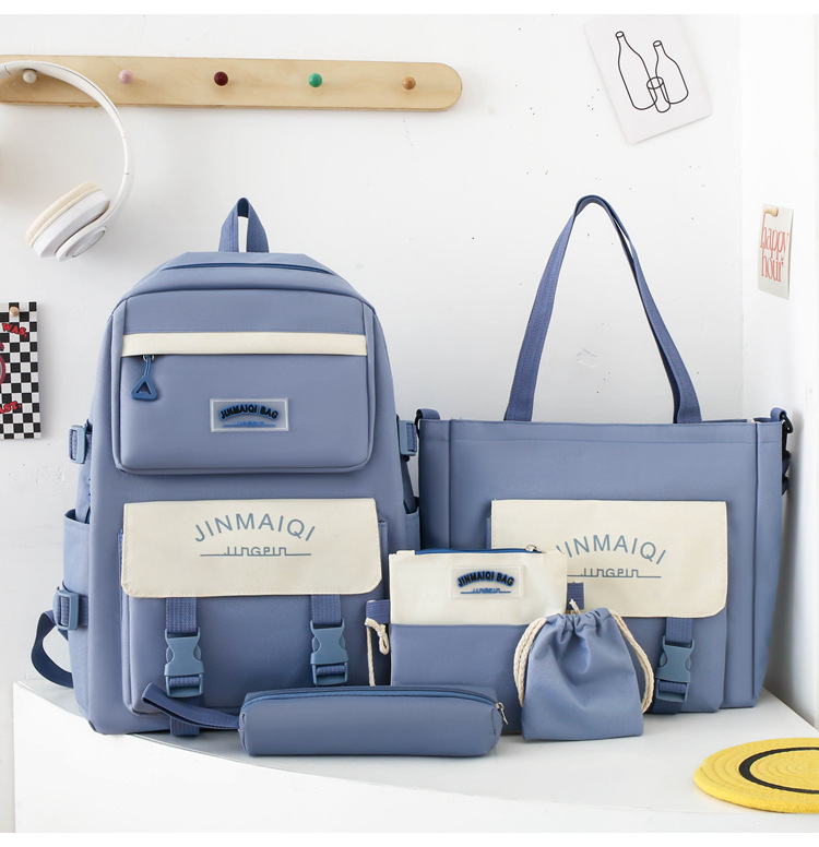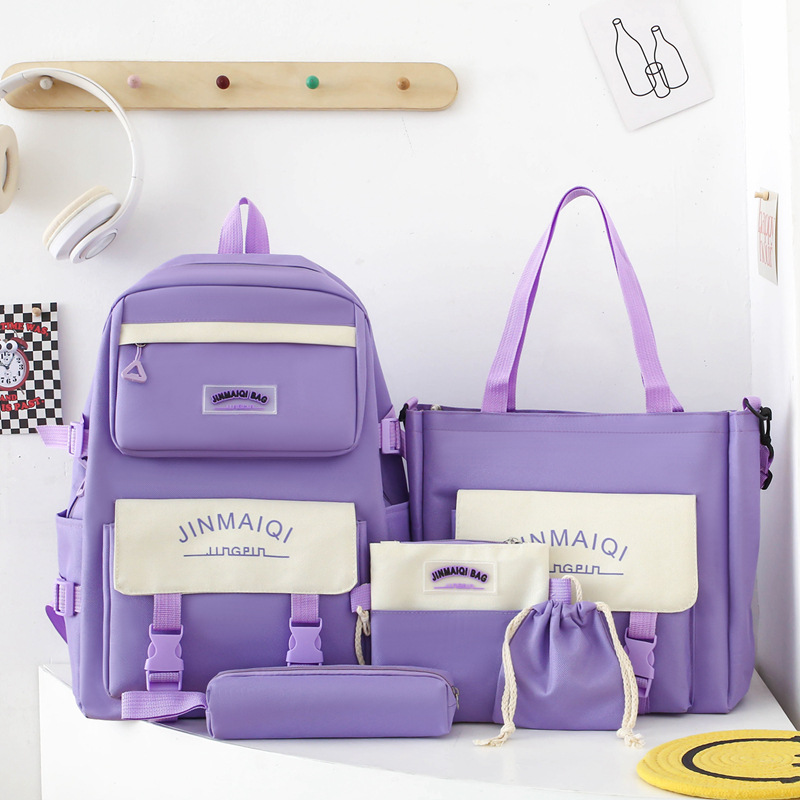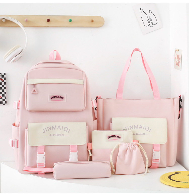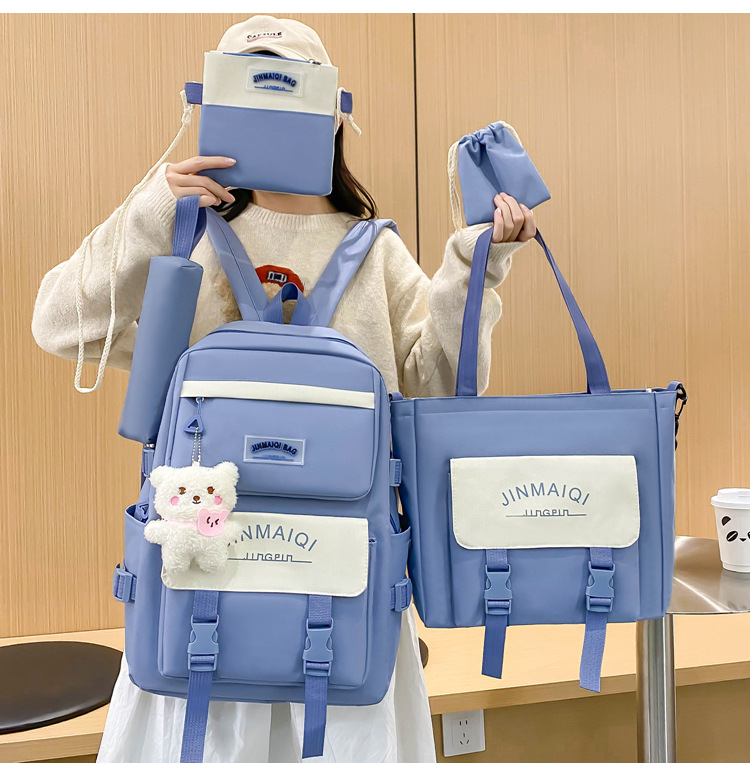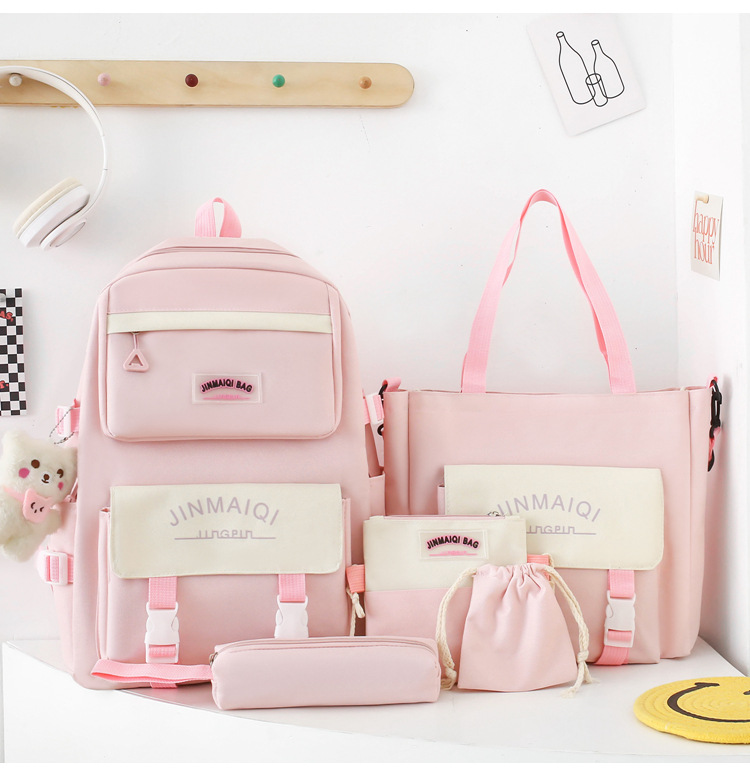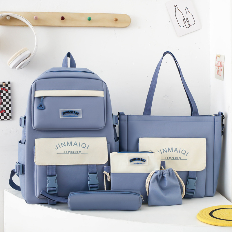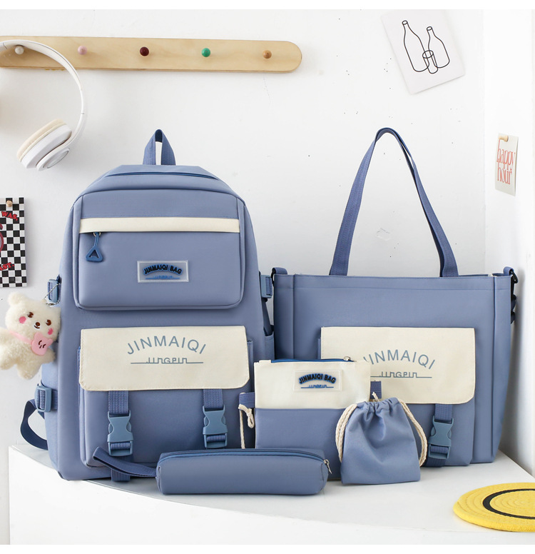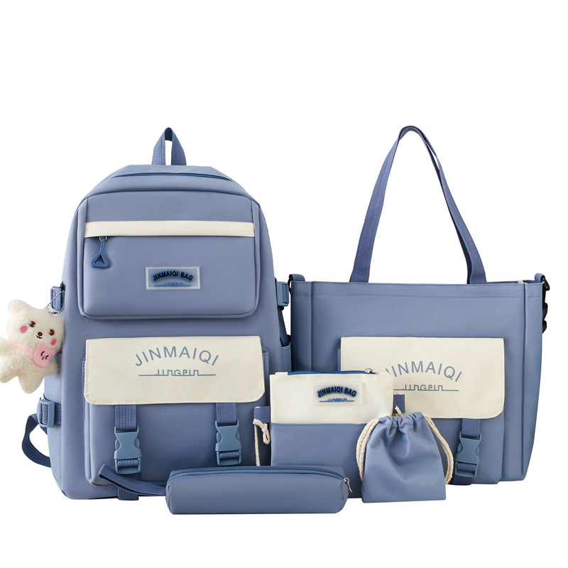 Schoolbag Women's Five-piece Backpack Large Capacity