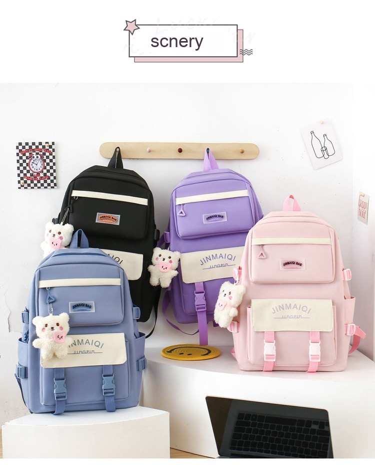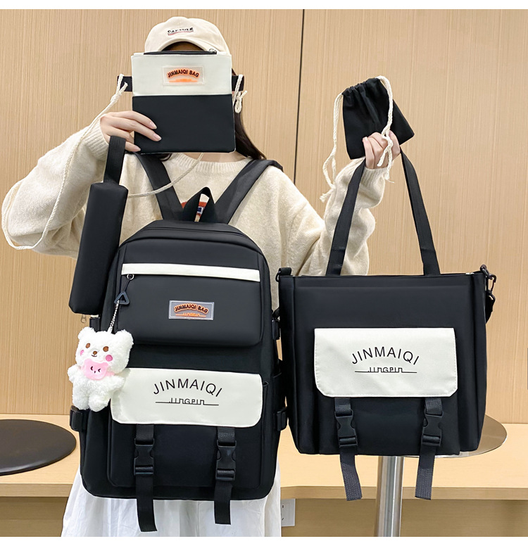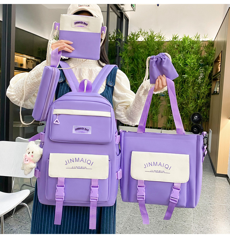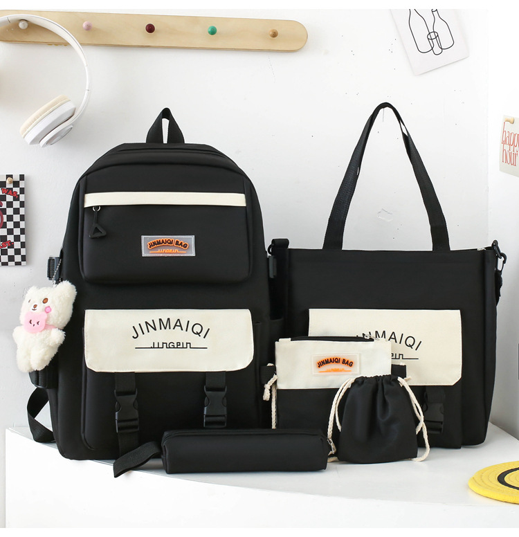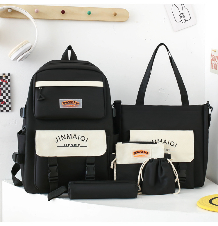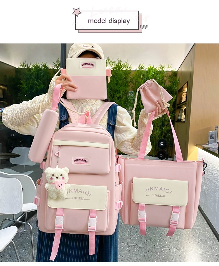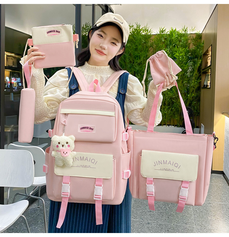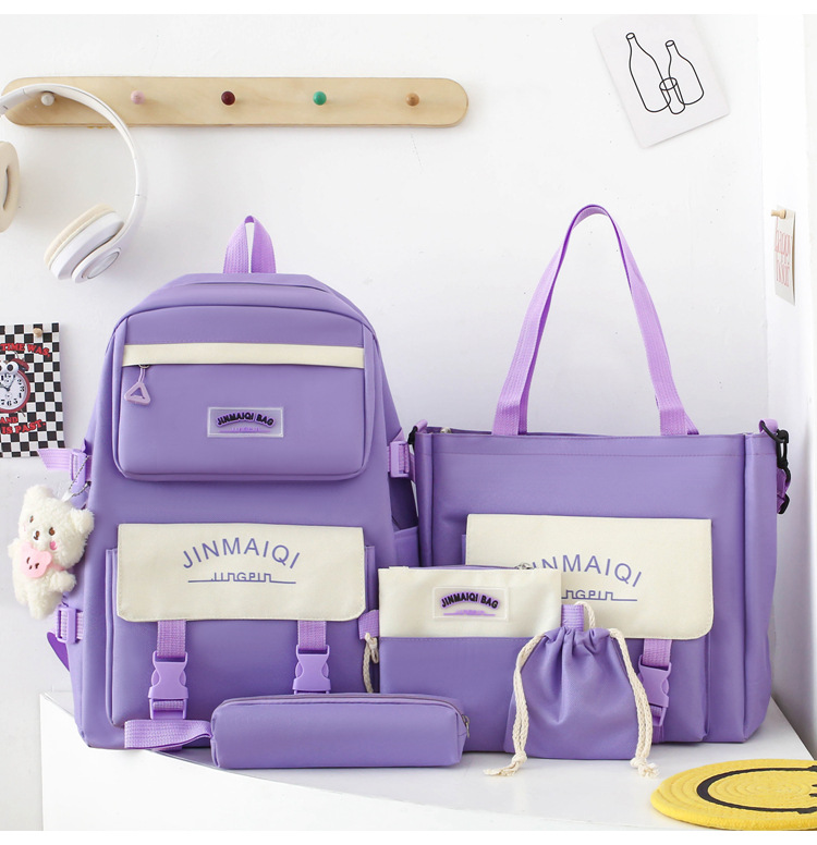 Schoolbag Women's Five-piece Backpack Large Capacity