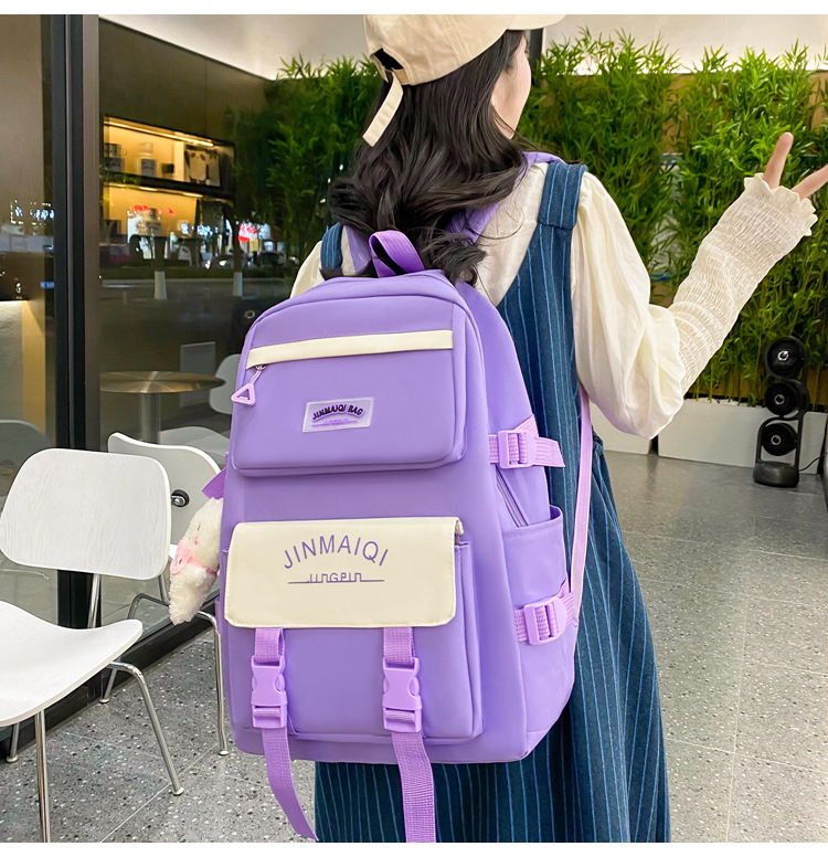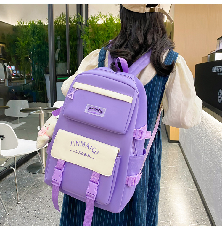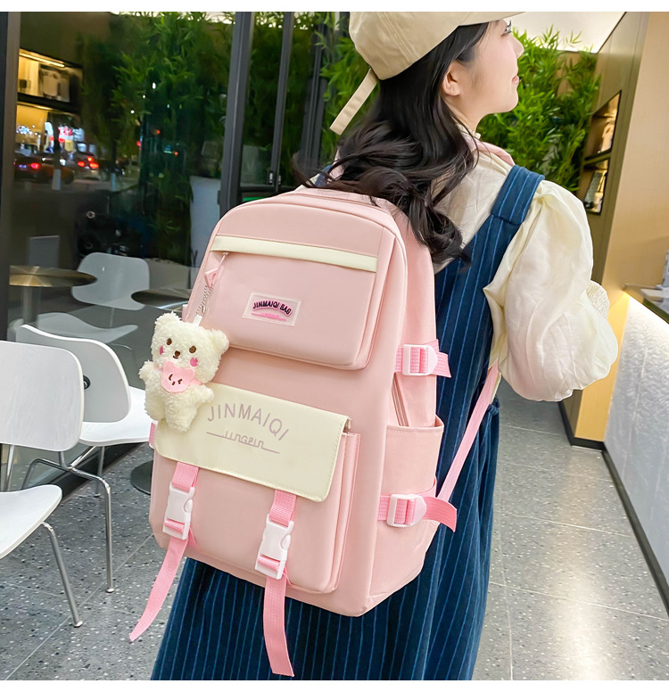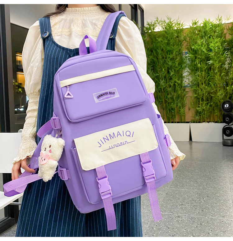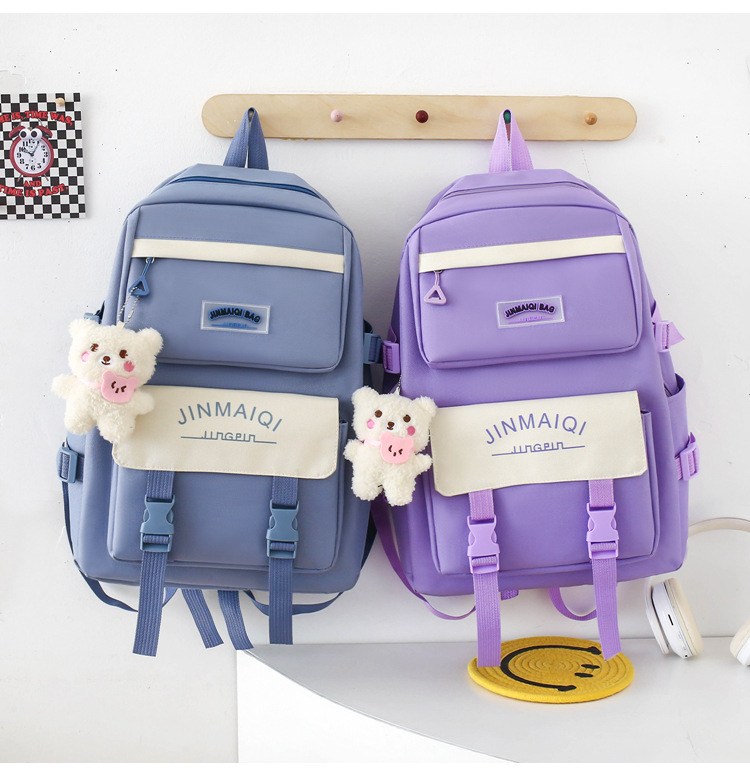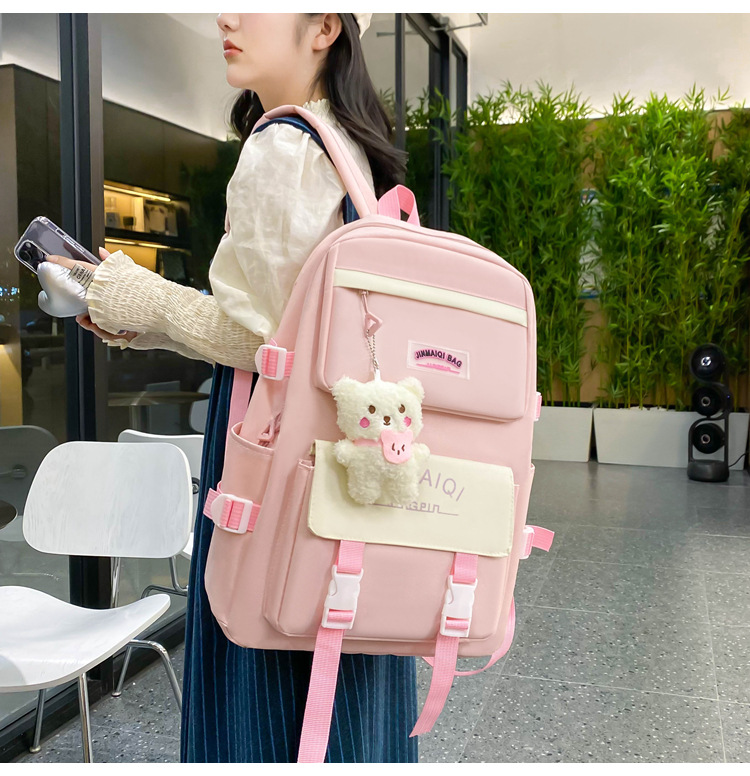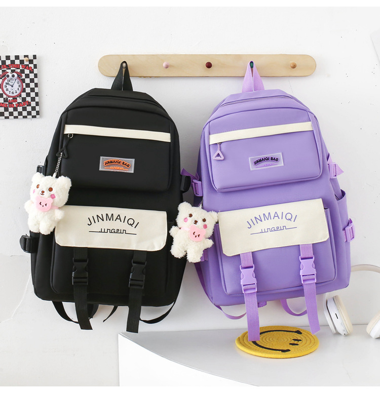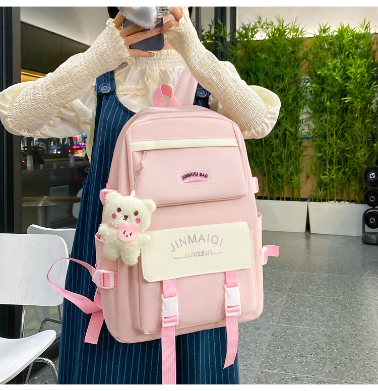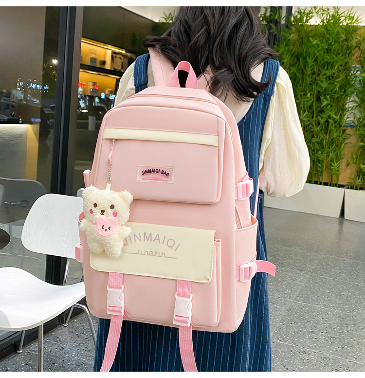Schoolbag Women's Five-piece Backpack Large Capacity