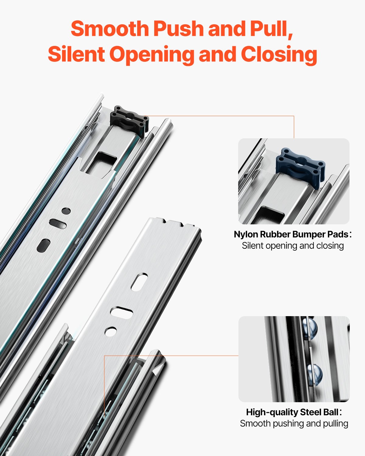 VEVOR Schubladenschienen, 600 mm, 10 Paar ausziehbare Schrankschienen mit Kugellager, 45 kg Tragkraft, robuste seitlich montierte Kommodenschubladenführungen, Schubladenschienen für den DIY-Ersatz
