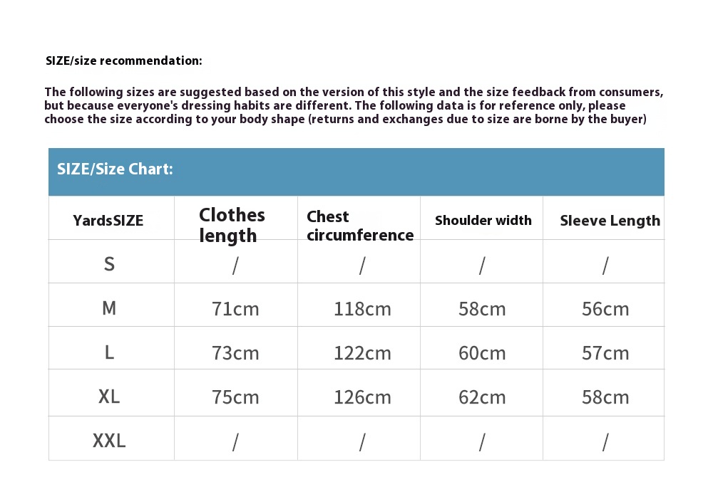 1. Asian sizes are 1 to 2 sizes smaller than European and American people. Choose the larger size if your size between two sizes. Please allow 2-3cm differences due to manual measurement. 2. Please check the size chart carefully before you buy the item, if you don't know how to choose size, please contact our customer service. 3.As you know, the different computers display colors differently, the color of the actual item may vary slightly from the following images.