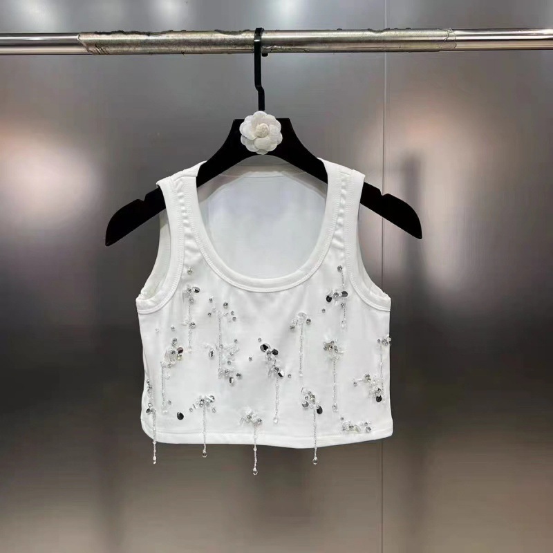 Scoop Sleeveless Diamond Nail Beads Sequins Heavy Industry Gold Style Vest