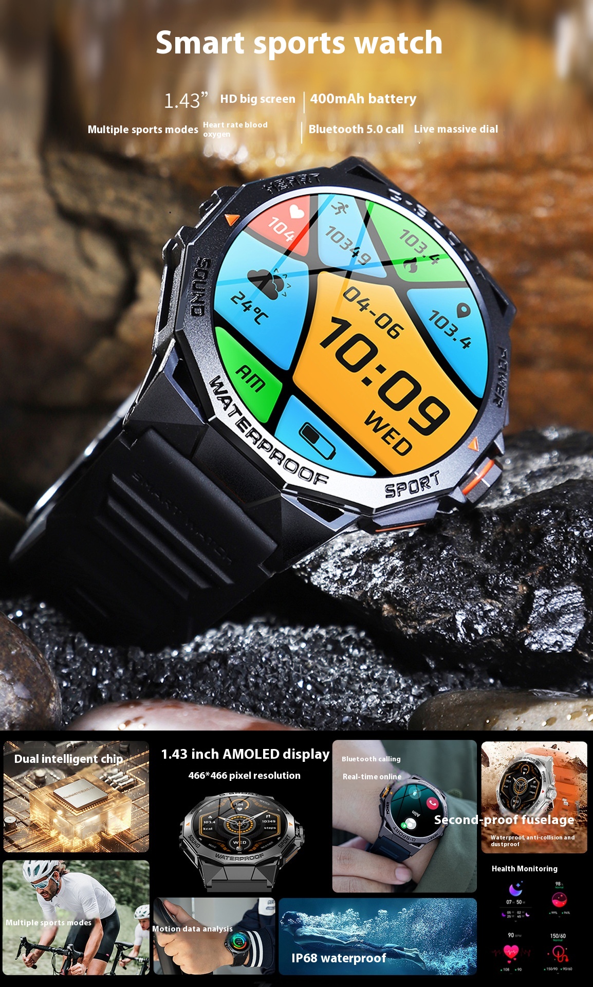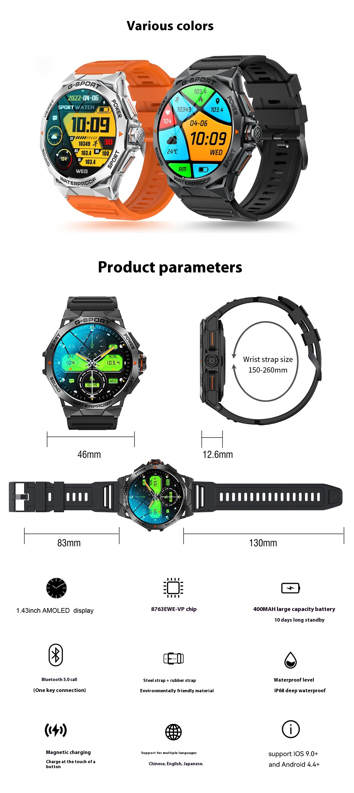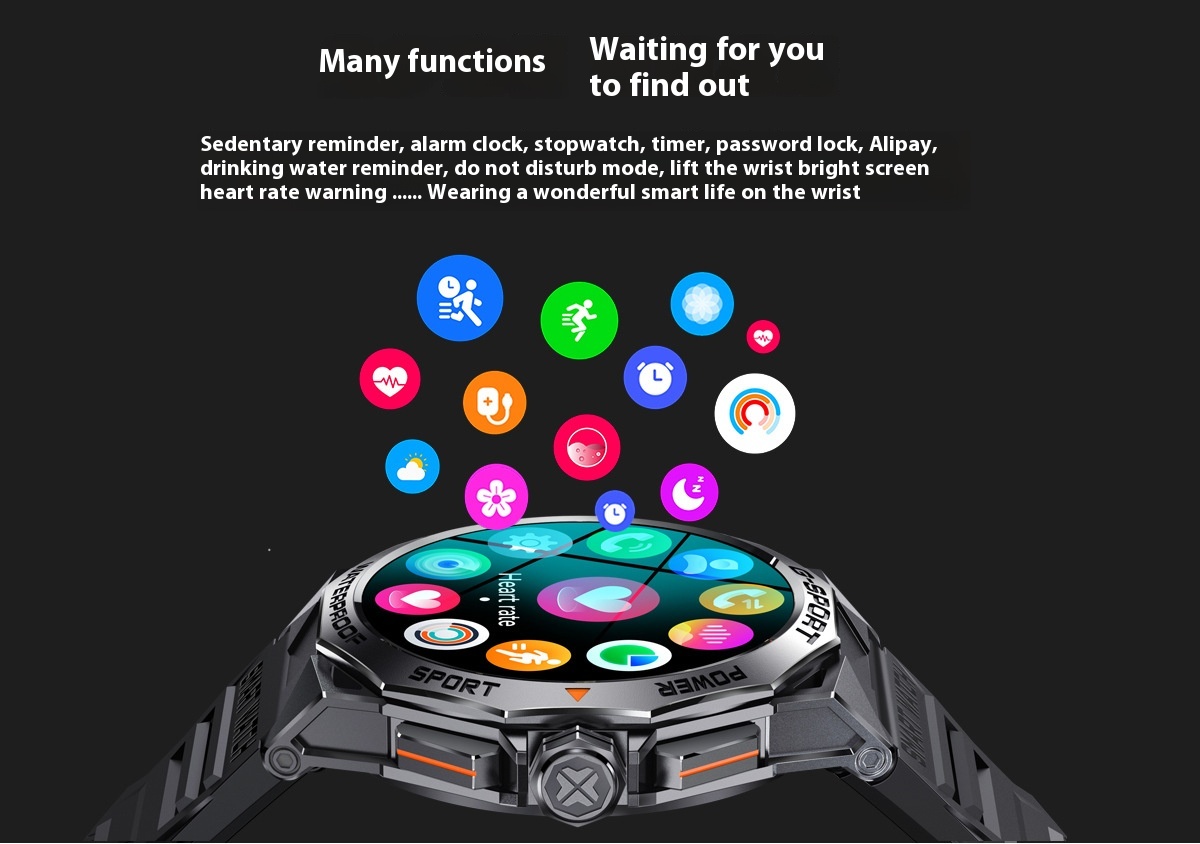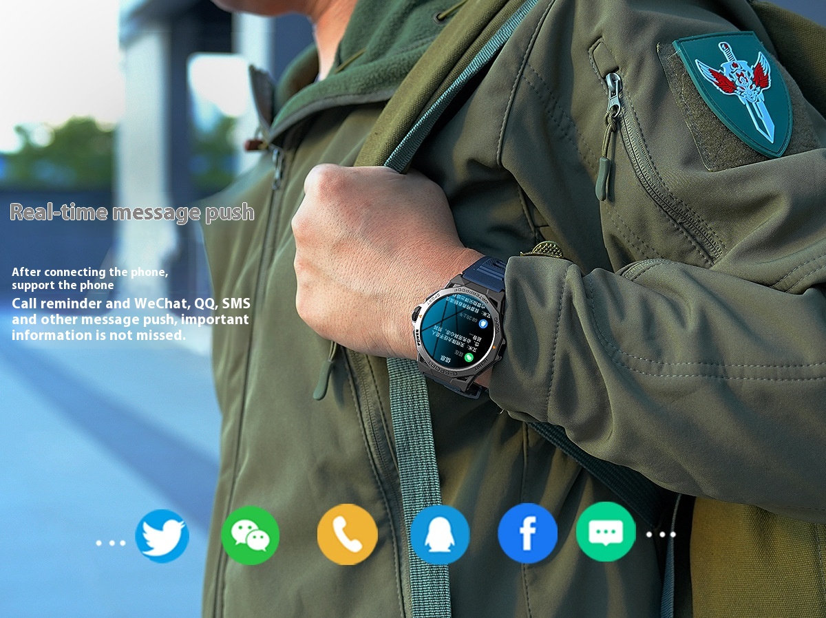 Functions: Waterproof, photo taking, step counting, heart rate monitoring, blood pressure measurement, social entertainment, Bluetooth call, smart reminder, remote control selfie, sleep monitoring, blood oxygen detection