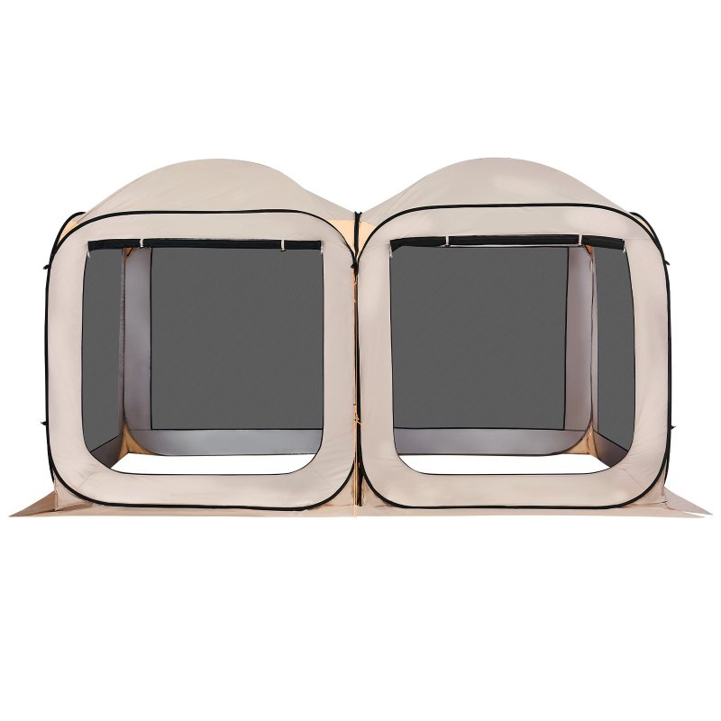 Stable & Windproof Structure: Reinforced fiberglass and steel poles keep the pop up screen tent upright even in windy conditions. The curved top design avoids water pooling and sagging