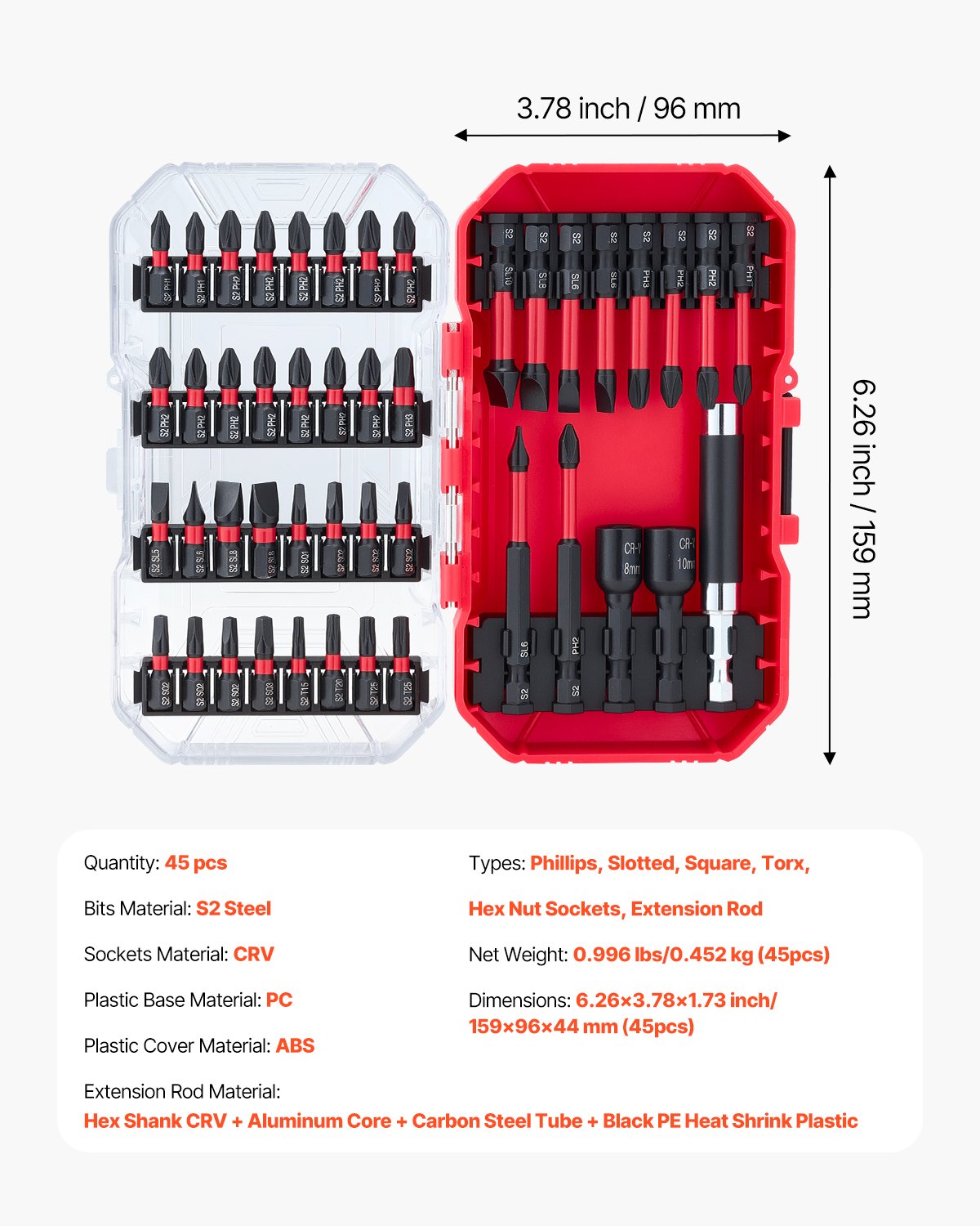 Screwdriver Bit Set 45-Piece Magnetic Bits Blackened Finish With Storage Case