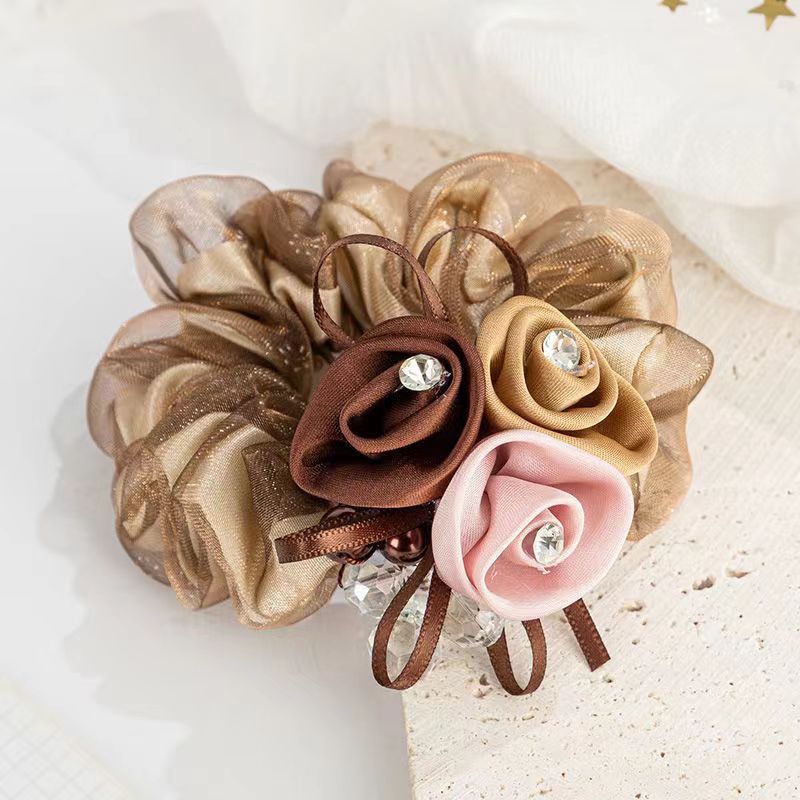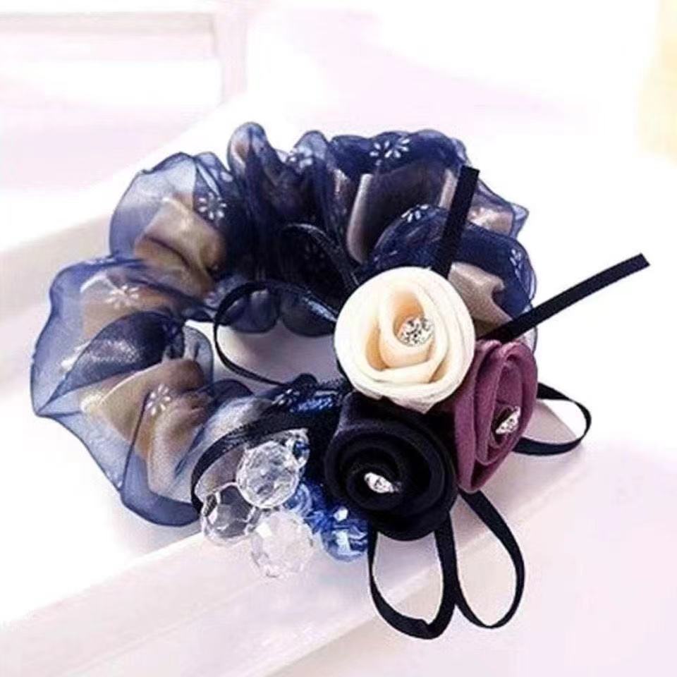 Color: 3 flowered Large Intestine Scrunchies - Champagne,3 flowered Large intestine Scrunchies - Wine red,3 flowered Large intestine Scrunchies - Black,3 flowered Large intestine Scrunchies - Navy blue,3 flowered Large intestine Scrunchies - Pink,3 flowered Large intestine Scrunchies - Silver light green