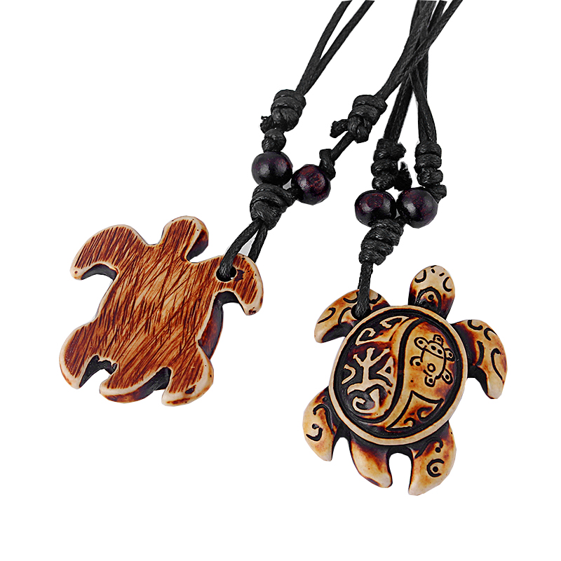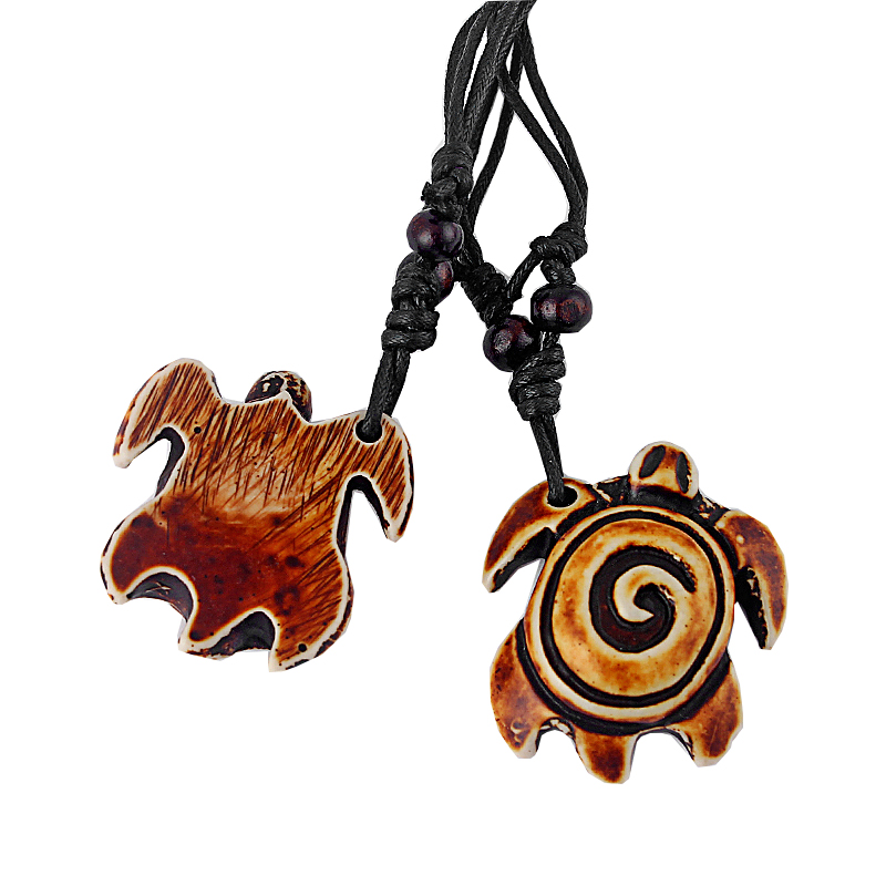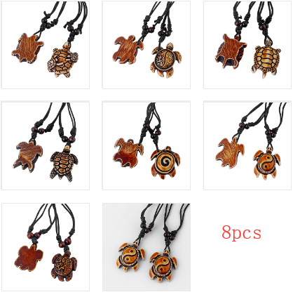DropShipping 8pcs Mixed Styles Ethnic Tribal Faux Yak Bone Sea Tortoise Pendant Necklace Adjustable