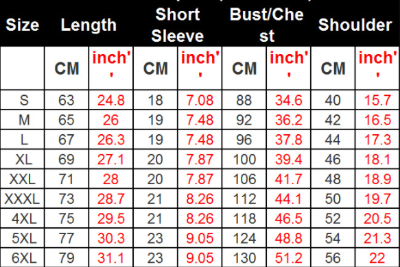 Size: S, M, L, XL, XXL, 3XL, 4XL, 5XL, 6XL