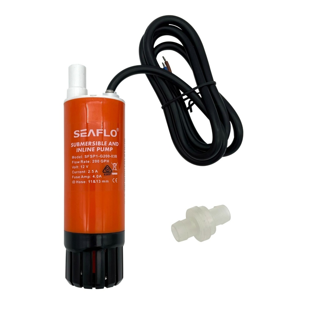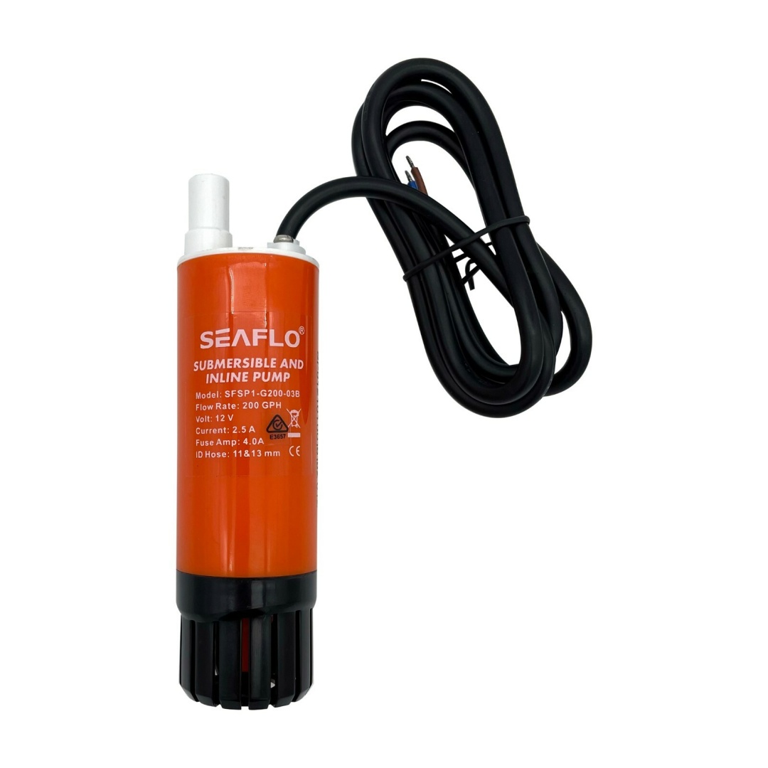 The SEAFLO 200GPH Submersible Inline Pump is a multi-application pump that can work with anything from fresh water to seawater. It can function to solve problems such as flooding or as an inline booster pump. With a very long life and quiet performance, it is the perfect solution for a wide range of applications. It can even act as a water pump to feed your vanity basin or sink.