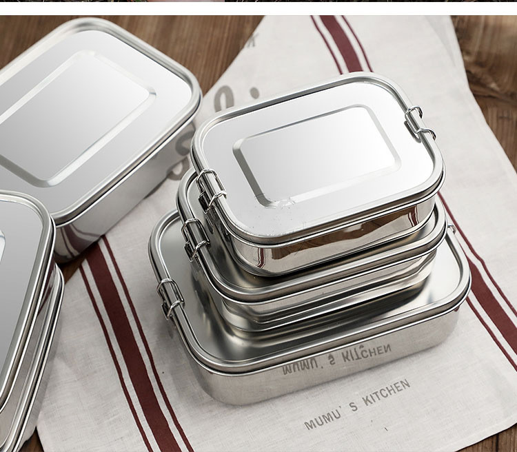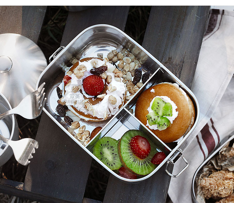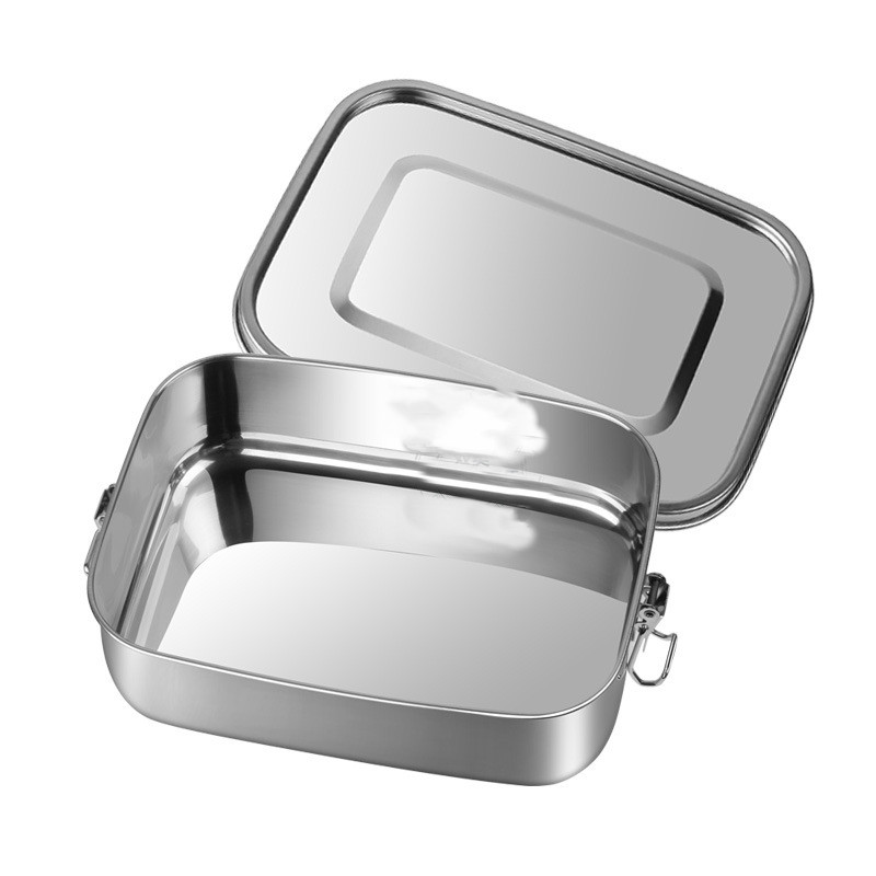 Sealed And Leak-Proof Stainless Steel Lunch Box Rectangular Three-Grid Double Buckle Lunch Box