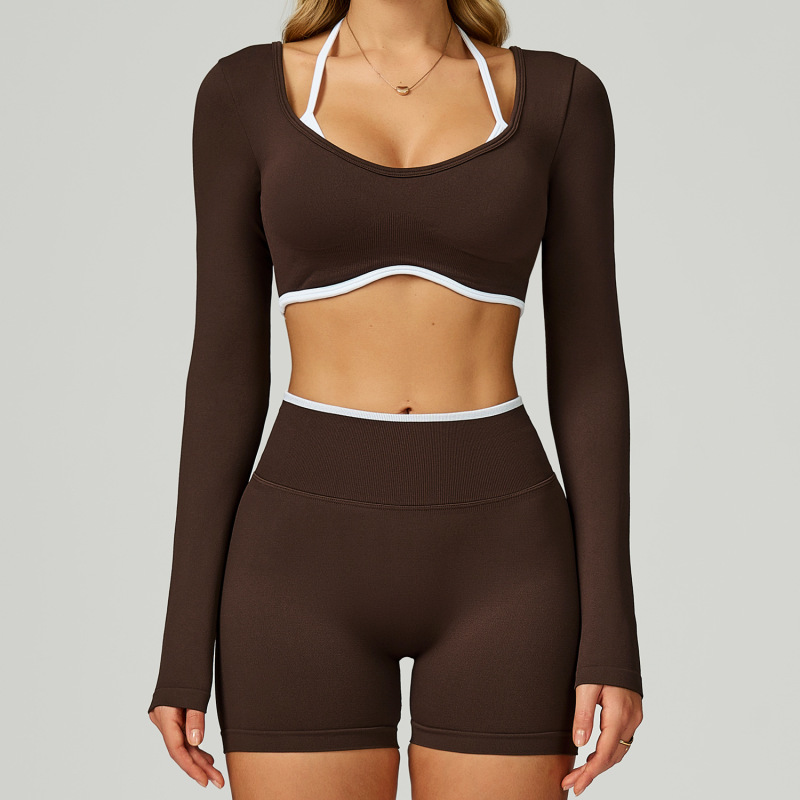 Color:9245 long sleeve 9245 shorts-white black, 9245 long sleeve 9245 shorts-white coffee, 9245 long sleeve 9245 shorts-white brown, 9245 long sleeve 9245 shorts-white powder, 9245 long sleeve 9245 shorts-hit white and blue