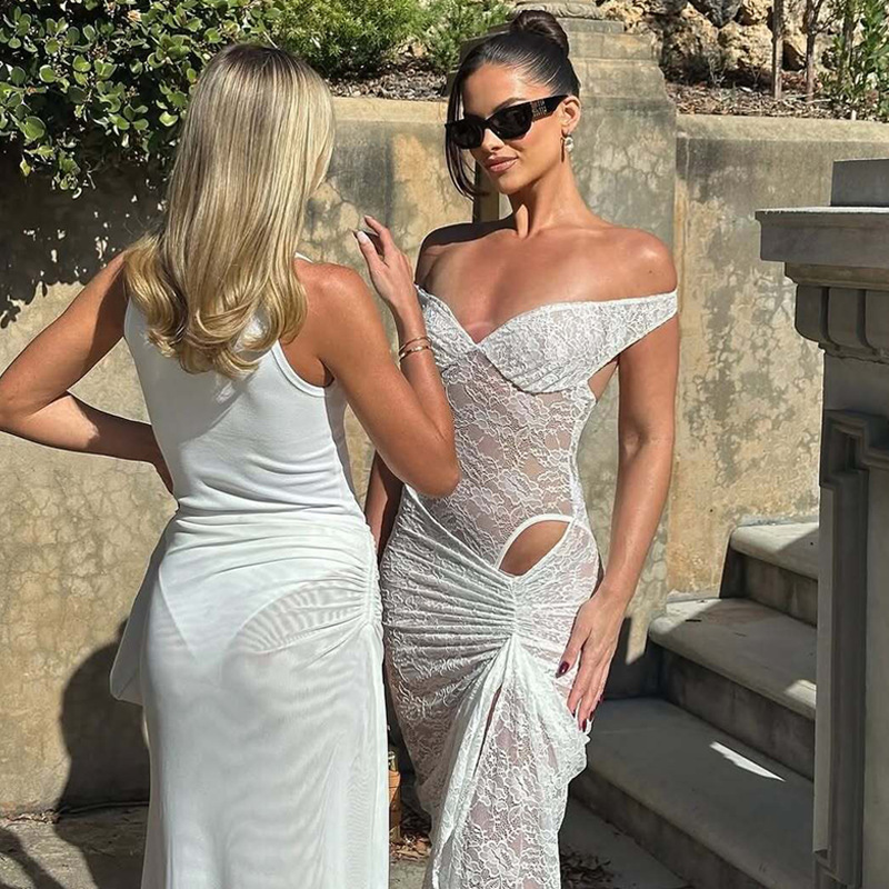 Seamless Ring-shoulder Backless Jumpsuit And Maxi Dress Set For Women