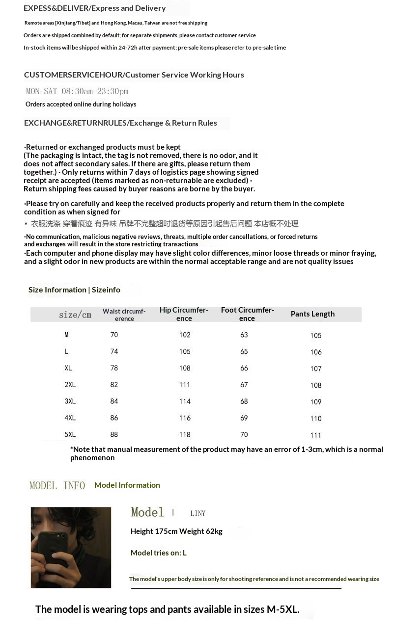 Sizes: M, L, XL, 2XL, 3XL, 4XL, 5XL