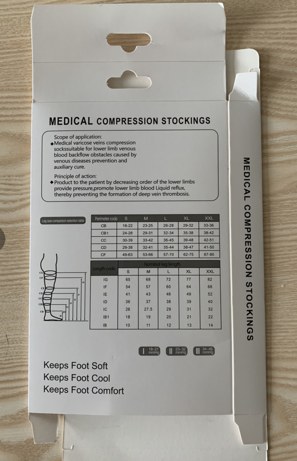 After wearing, the compression stockings gently squeeze the leg veins through force to improve venous blood flow and reduce leg pressure