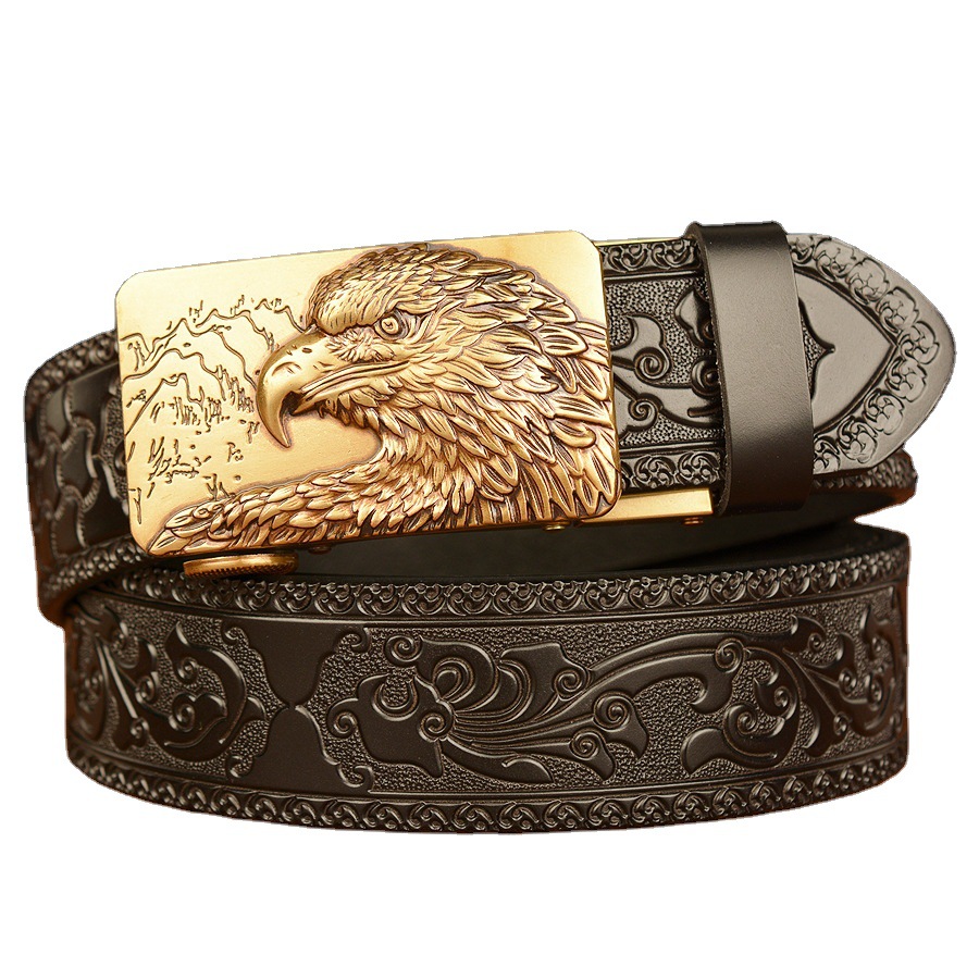 Color: 4011 black round eagle head gold buckle, 4011 black round eagle head silver buckle, 4011 brown round eagle head gold buckle, 4011 brown round eagle head silver buckle