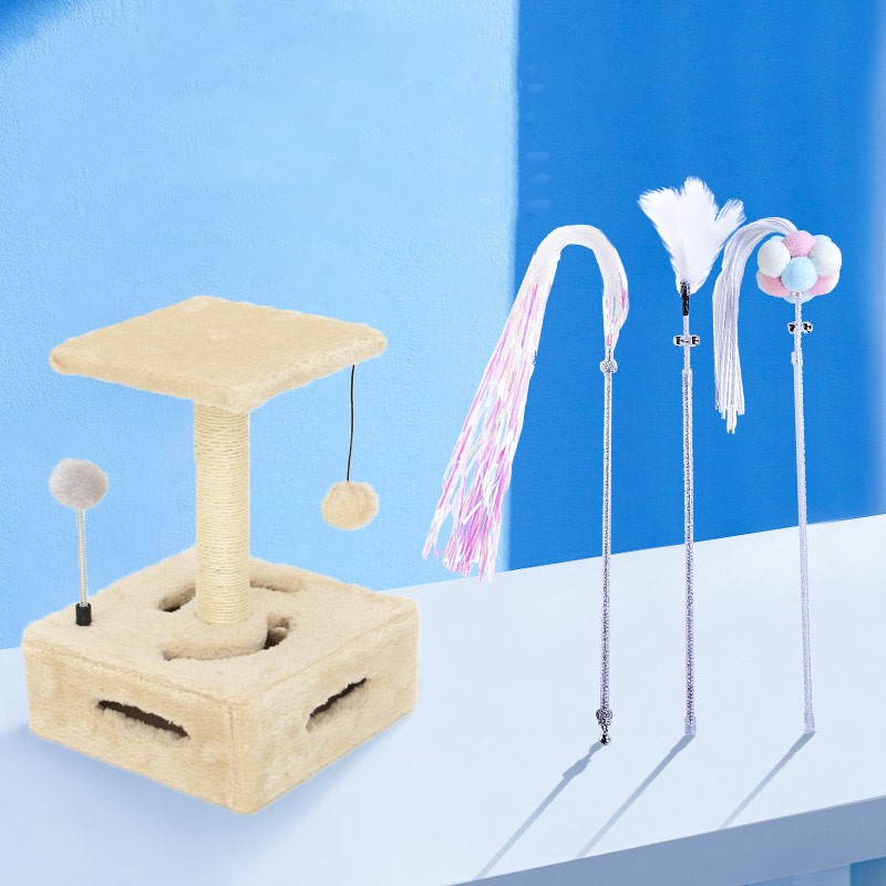 H Turntable Cat Scratching Post + Color Fairy Stick 3-Piece Set