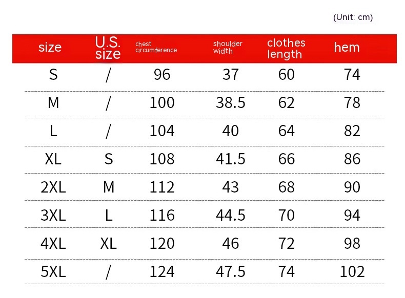 Size: S,M,L,XL,2XL,3XL,4XL,5XL