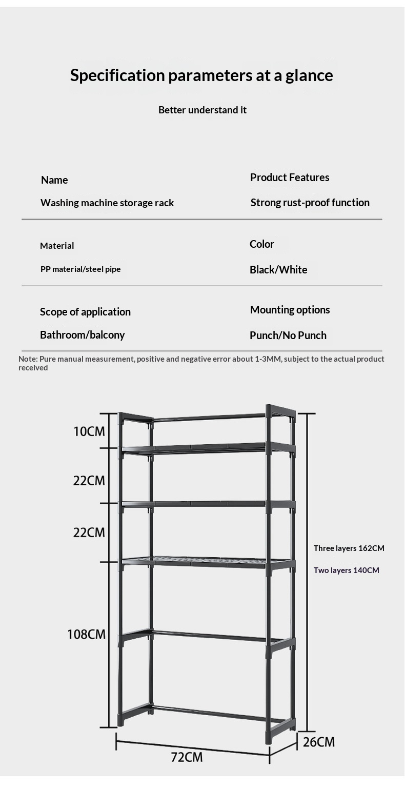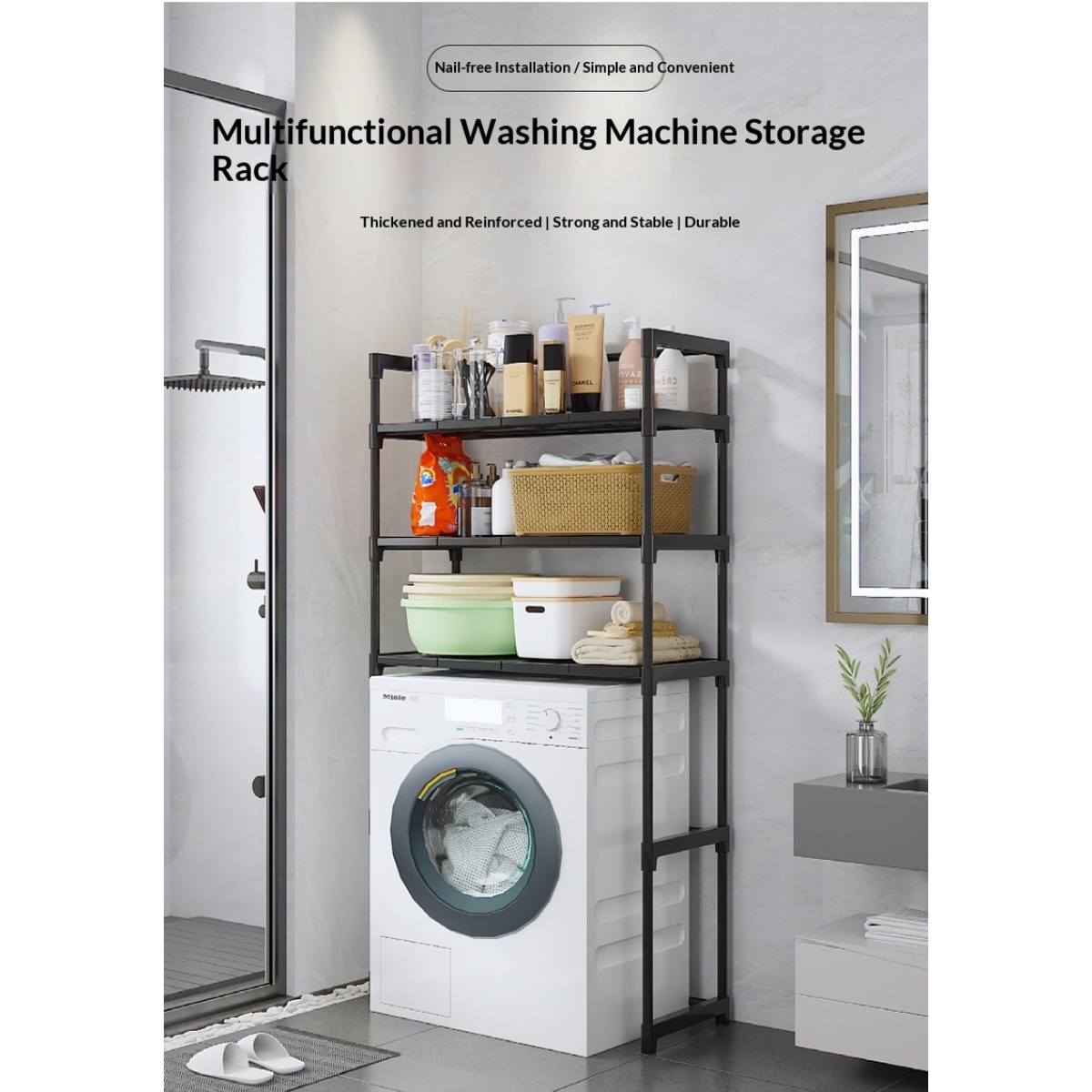Self Pickup Only - Black 3-layer Storage Rack For Washing Machine