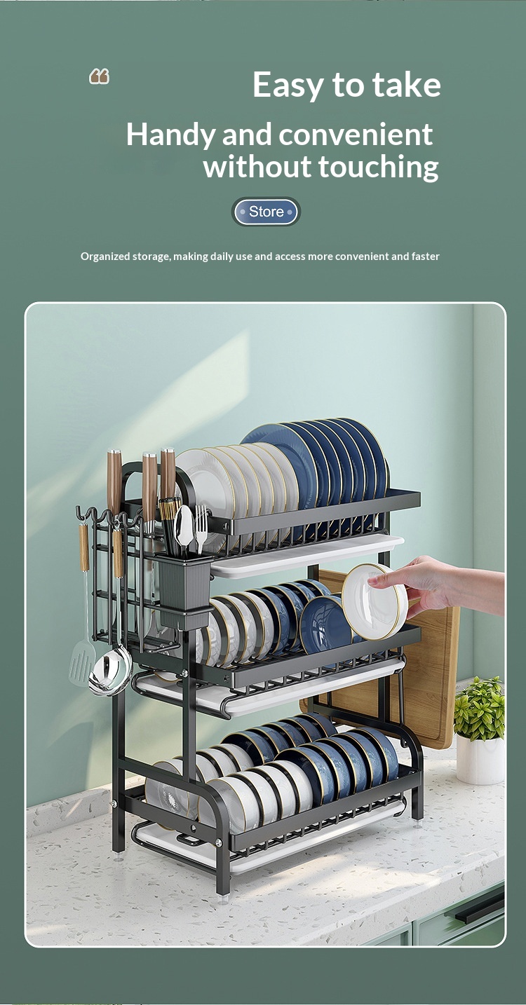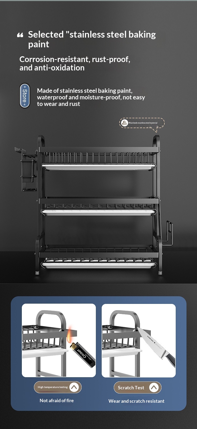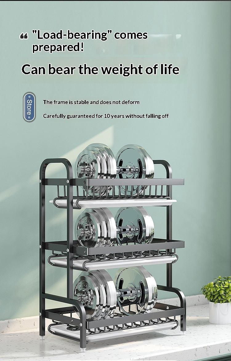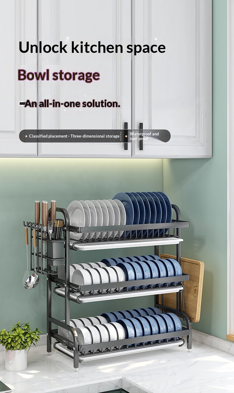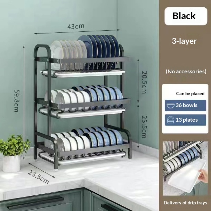 Self-pickup Only- Three Layers Of Black Kitchen Shelf, Dish Rack, Bowl And Plate Storage Rack, Draining Rack, Household Multi-functional Bowl And Chopsticks Storage Shelf--Color Black