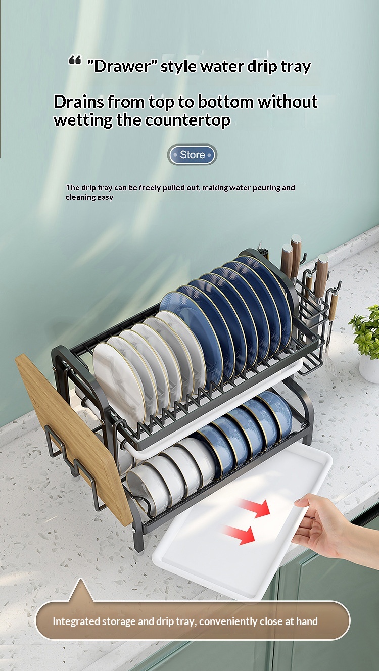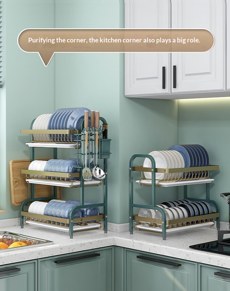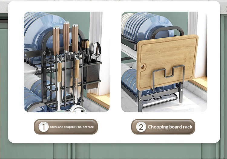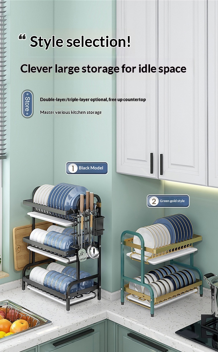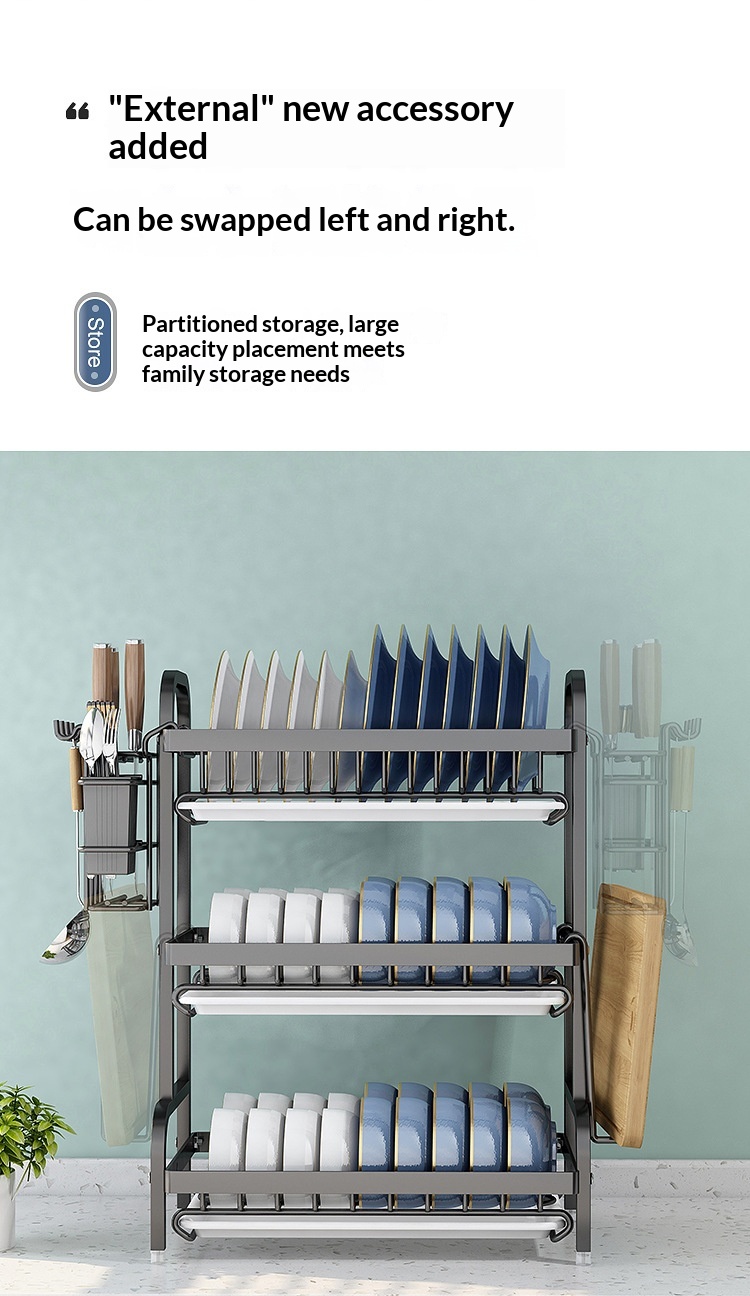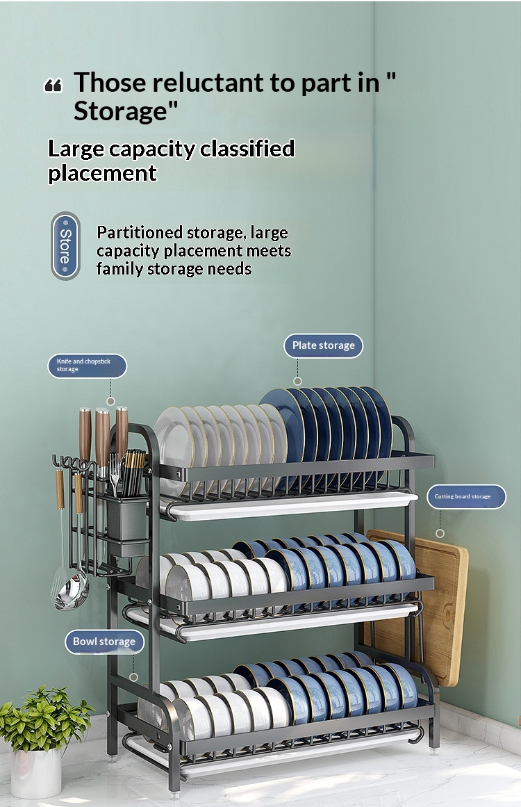 Self-pickup Only- Three Layers Of Black Kitchen Shelf, Dish Rack, Bowl And Plate Storage Rack, Draining Rack, Household Multi-functional Bowl And Chopsticks Storage Shelf--Color Black