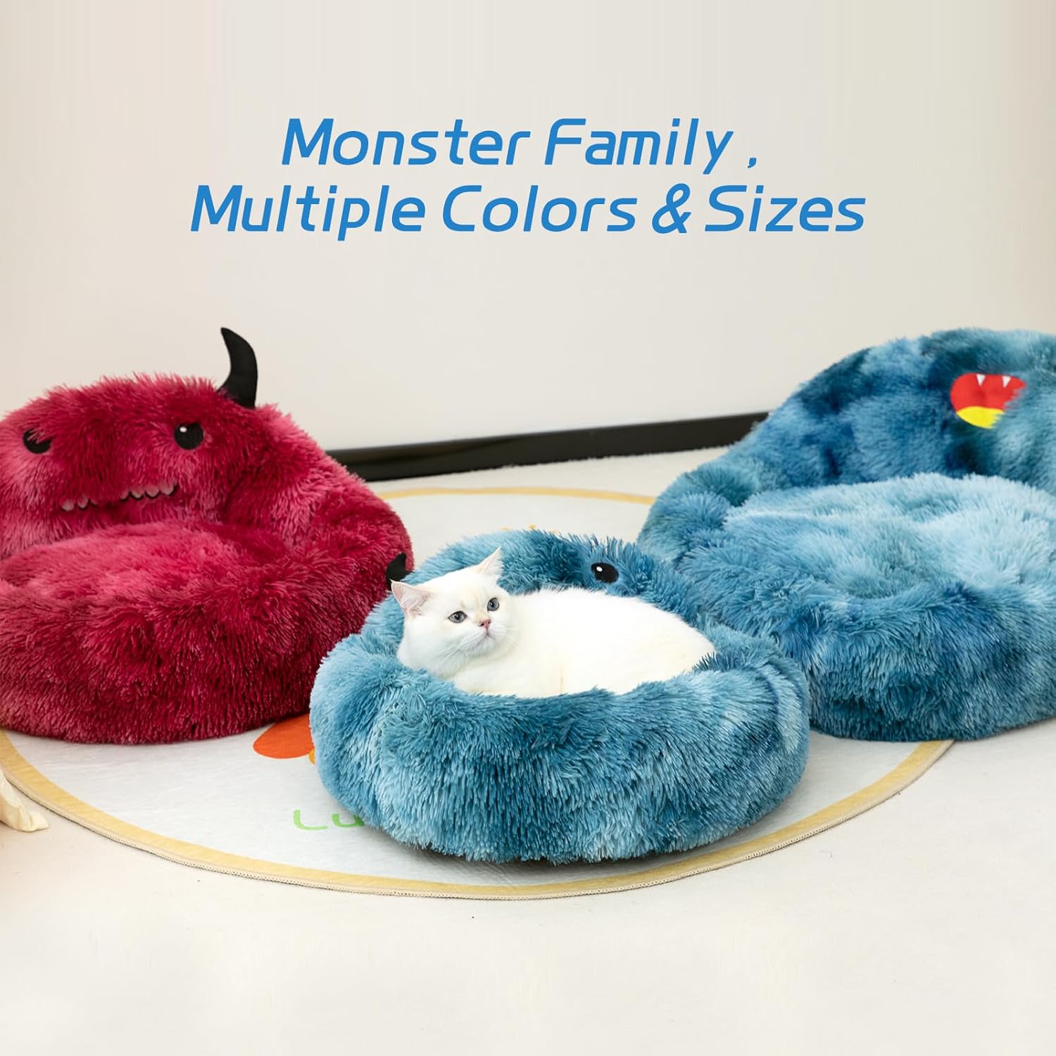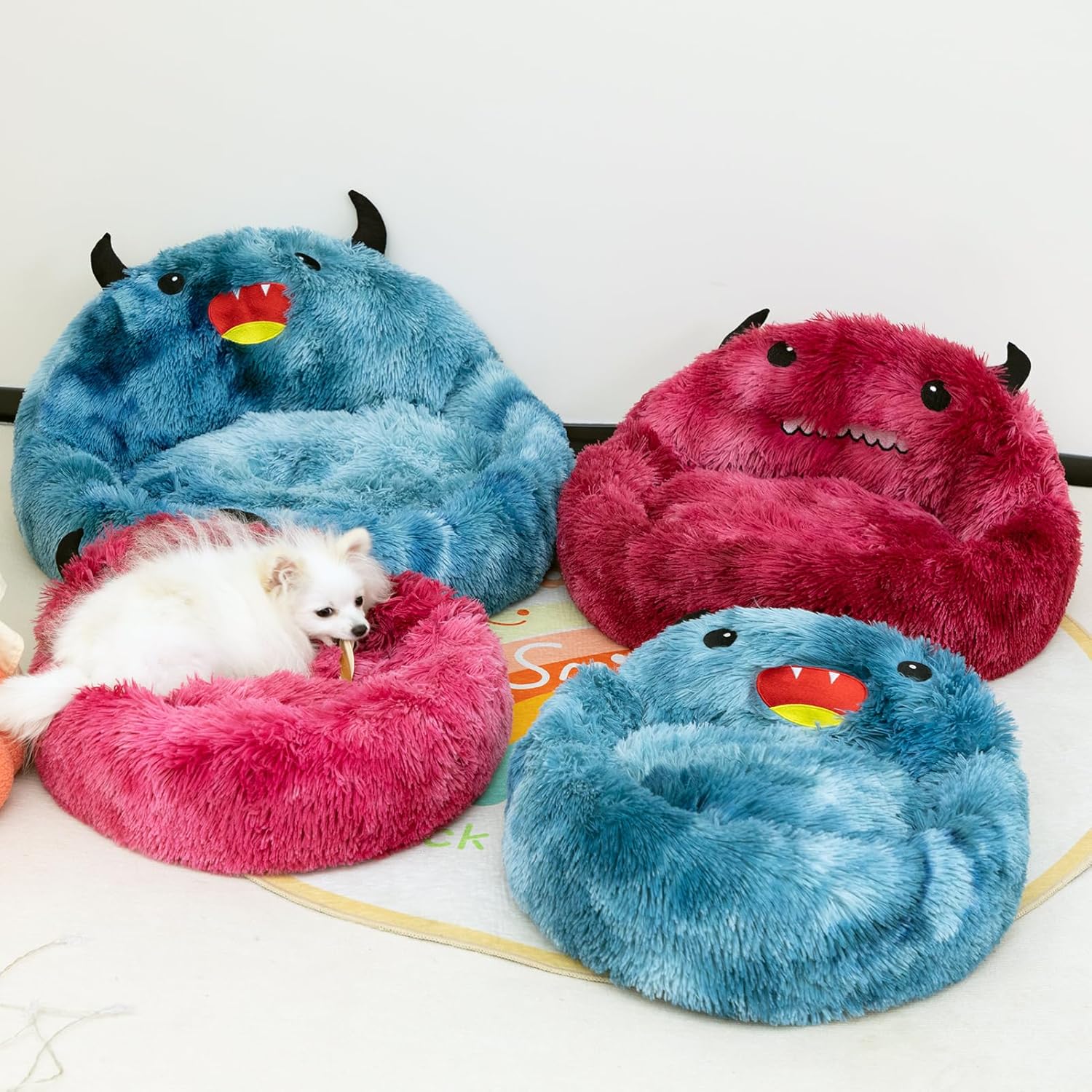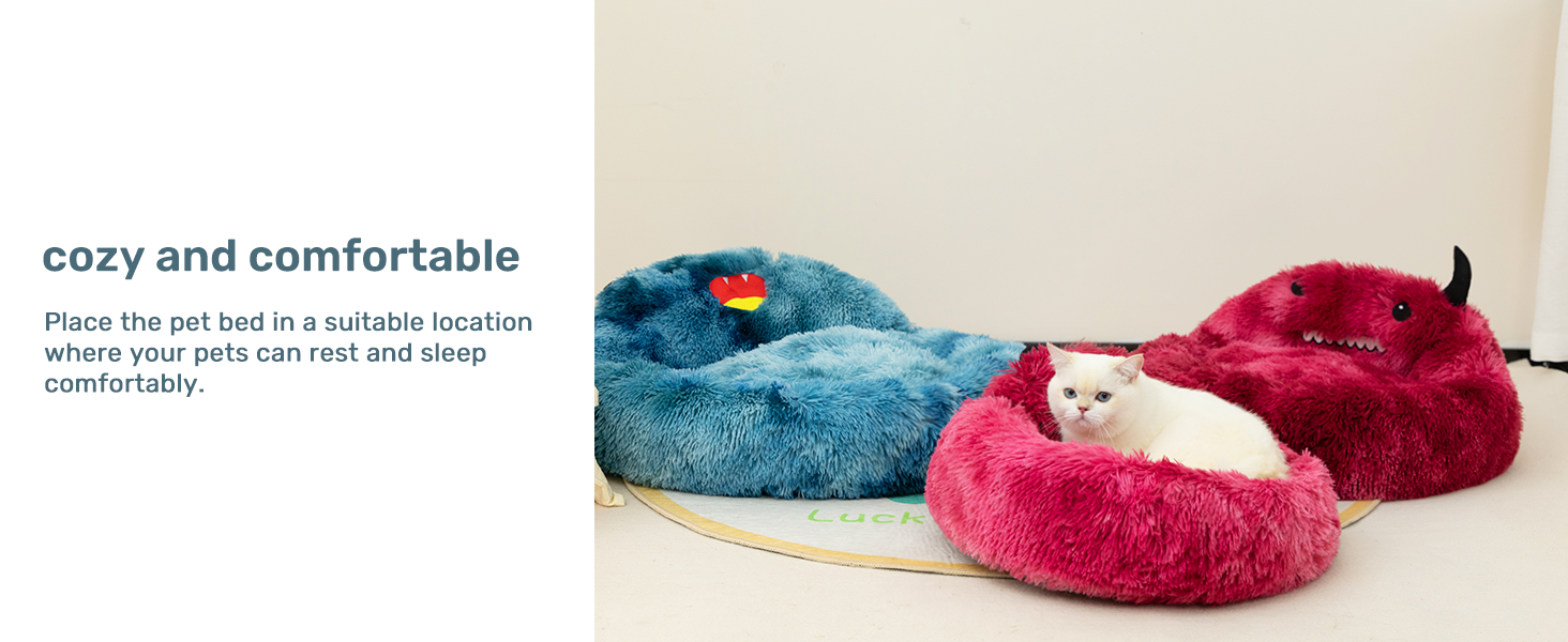 Self-Warming Donut Pet Bed Round Faux Fur Luxury Cozy Cat Nest Monster Sleeping Bed For Cats And Dogs