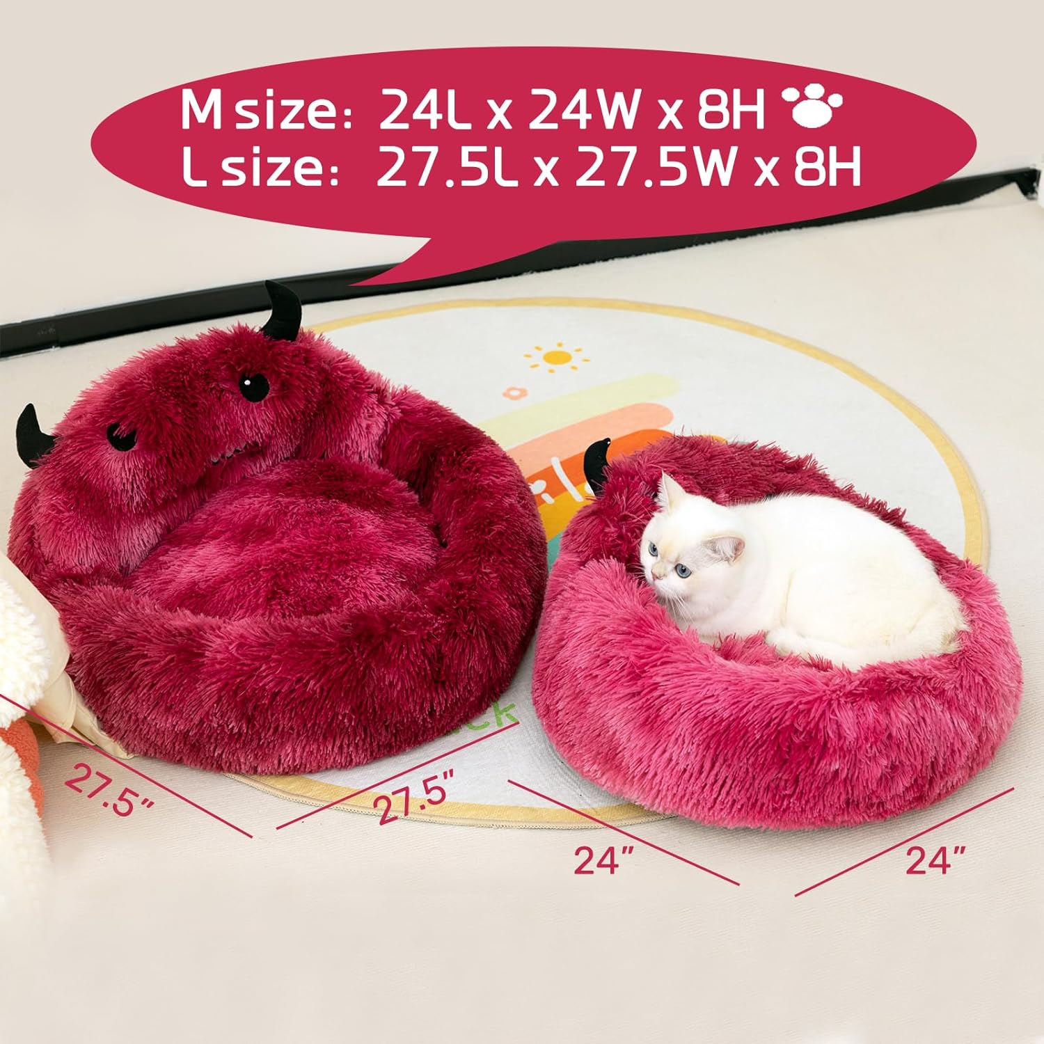 • The round shape of the bed provides a sense of security and allows your pet to curl up and relax in a safe and comfortable space. Provides exceptional support for your pet's head and neck, and it is especially beneficial for cats with joint pain or arthritis.