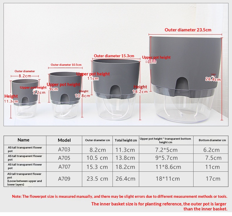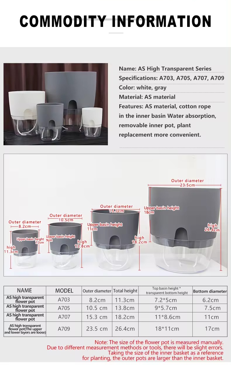 Features: Breathable, translucent, resistant to deformation, corrosion-resistant, self-watering, sturdy and durable, water-saving and drought-resistant
