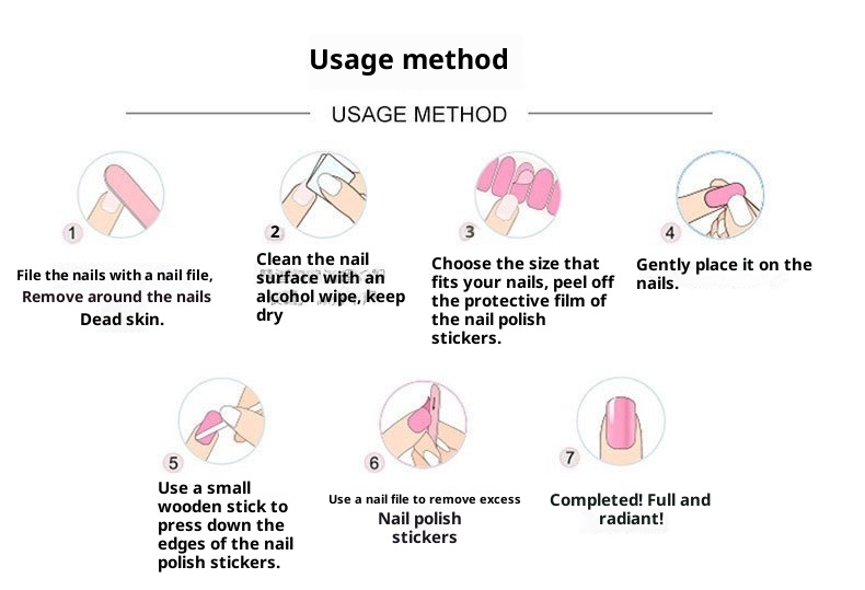 Nail stickers + tool kit + wooden stick + nail file + alcohol swabs