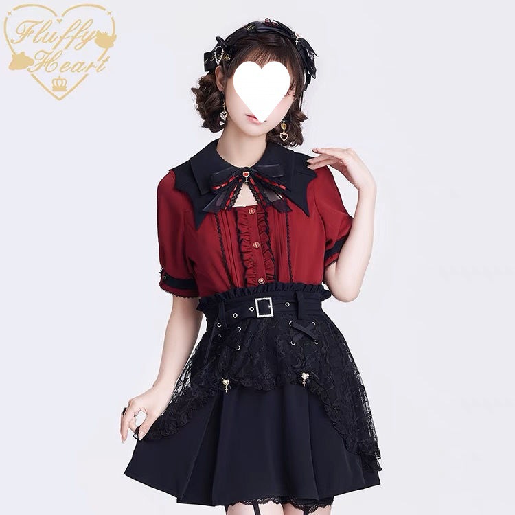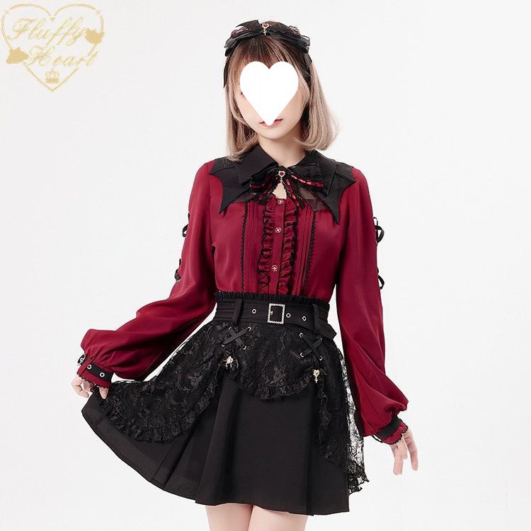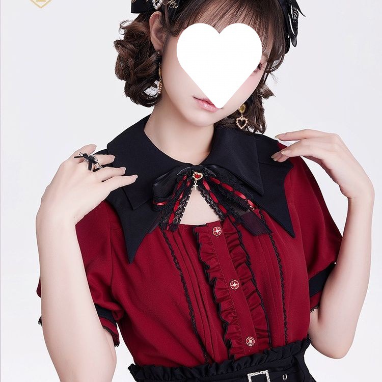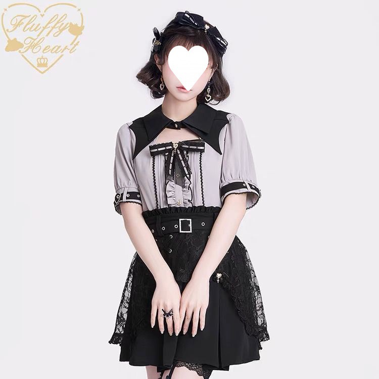 Send Bow Blood-sucking Ji Japanese Style Lace Hollow Bat Collar Short Sleeve Long Sleeve Shirt Two-color