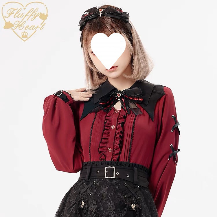 Color: wine red short sleeve shirt with brooch, wine red long sleeve shirt with brooch