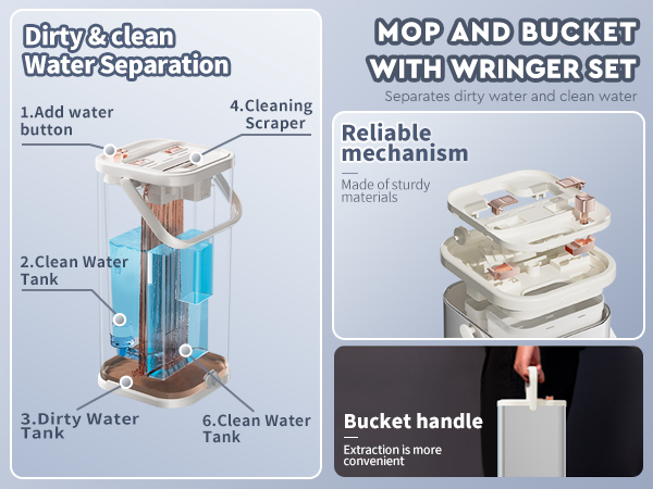 Separates Dirty Water Mop, Flat Mop And Bucket For Home With Extra Refills, Stainless Steel Mop And Bucket With Wringer