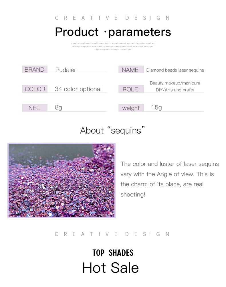 Efficacy: Free glue brick stone beads laser sequins 33 color fairy stickers beauty makeup nail DIY craft jewelry