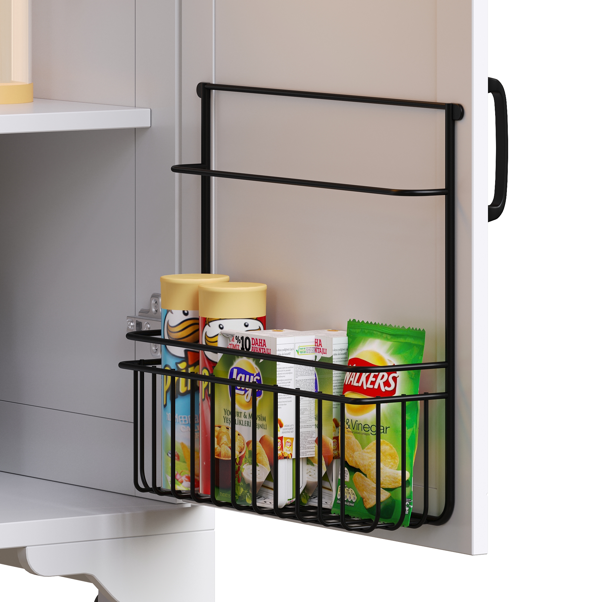 The cart stands out due to its exceptional flexibility in space utilization: double-sided panels with multi-tiered snack shelves ensure organized storage of snacks, tea bags, and spices; the lower area offers both closed and open storage compartments for cutlery, small appliances, or everyday items. The outstanding feature is the foldable work surface – it can be easily unfolded when needed to enlarge the work area or folded away to save space. Whether for spontaneous meal preparation, entertaining guests, or as an additional work surface in compact kitchens – it effortlessly adapts to various usage scenarios.