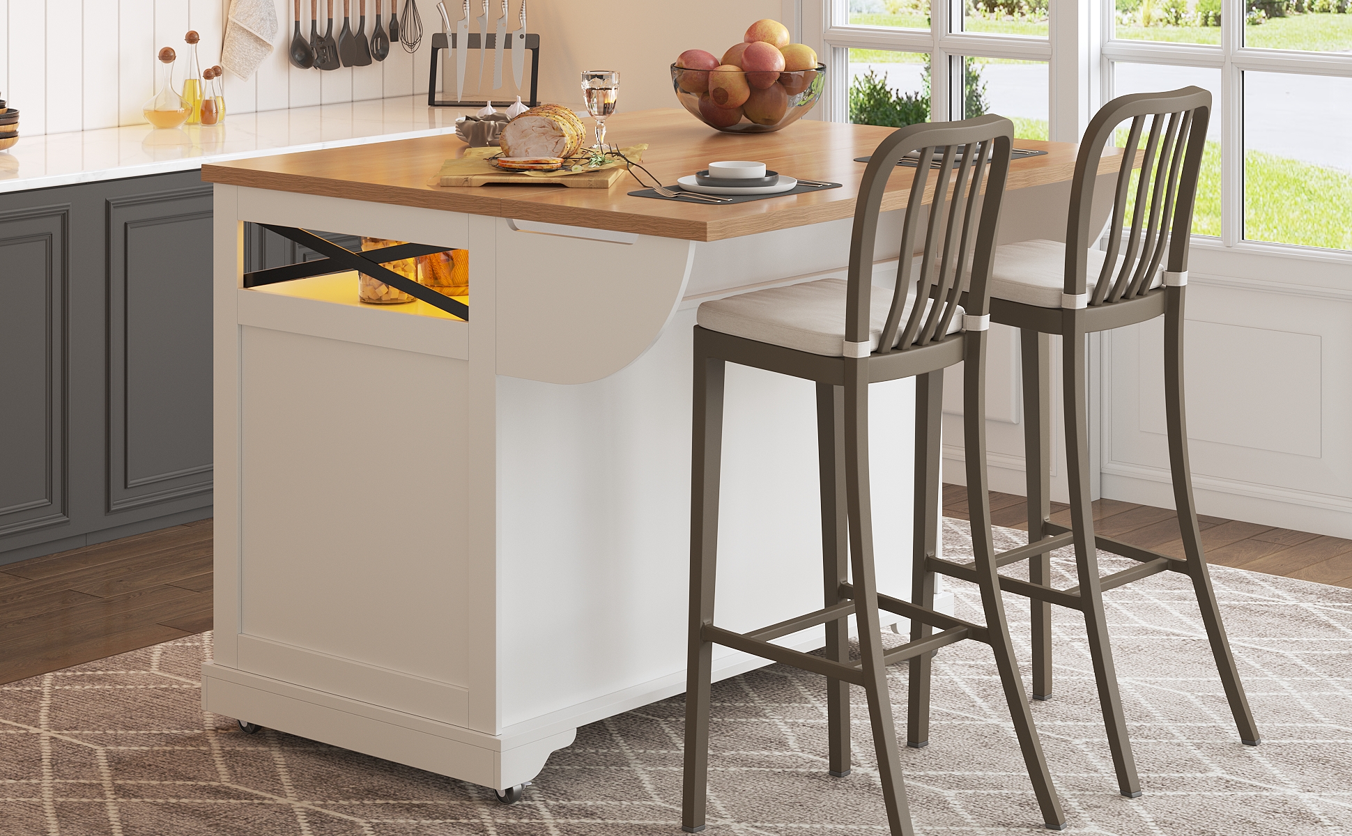 Product Name:Serving Cart Kitchen Rollable with Drop-Leaf Table & App LED Lighting, Snack Shelves, Multifunctional as Kitchen Island Mobile Bar Side Table, Modern Kitchen Island, Kitchen Cabinet, Dining Table
