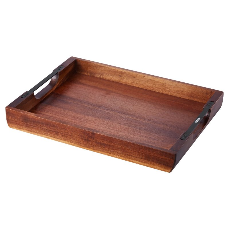 Serving Tray 17x12.2 Inch Acacia Food Serving Table Laptop Desk With Handles