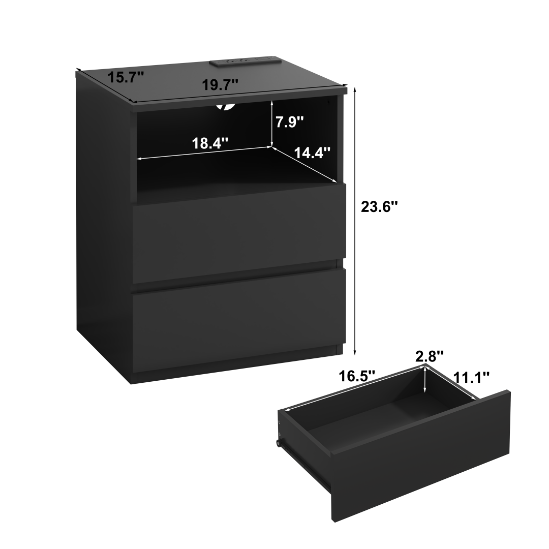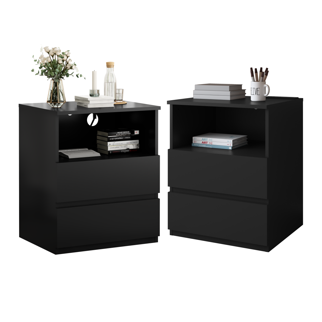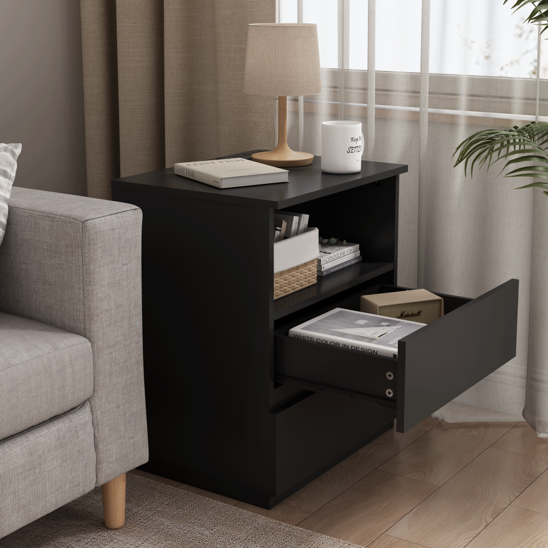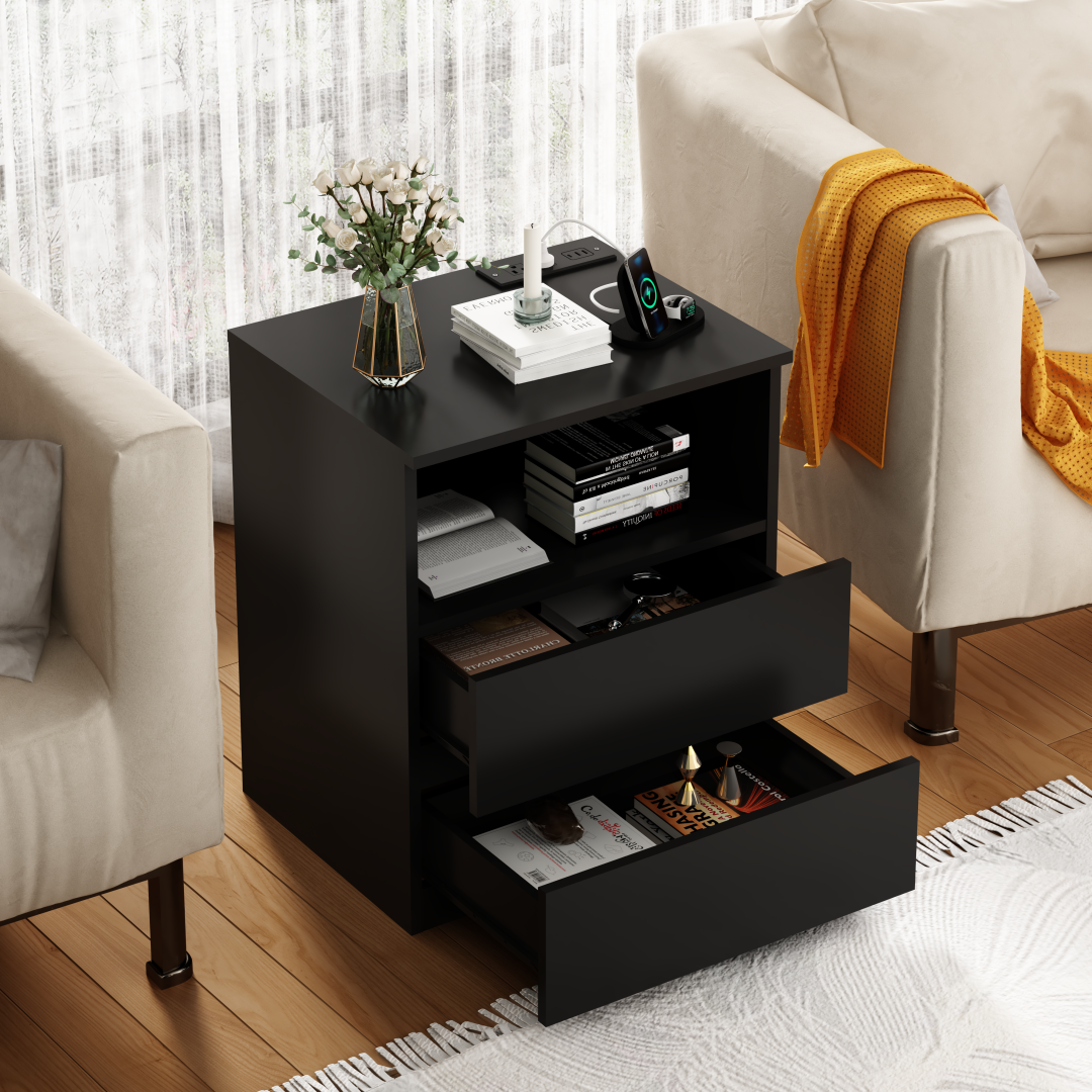 Product Name:(Set of 2)End Table with Fast USB C Charging Station, Sofa Side Table with 2 Drawers, Large Storage Modern Wood Storage Cabinet for Living Room,Bedroom,Office, Black