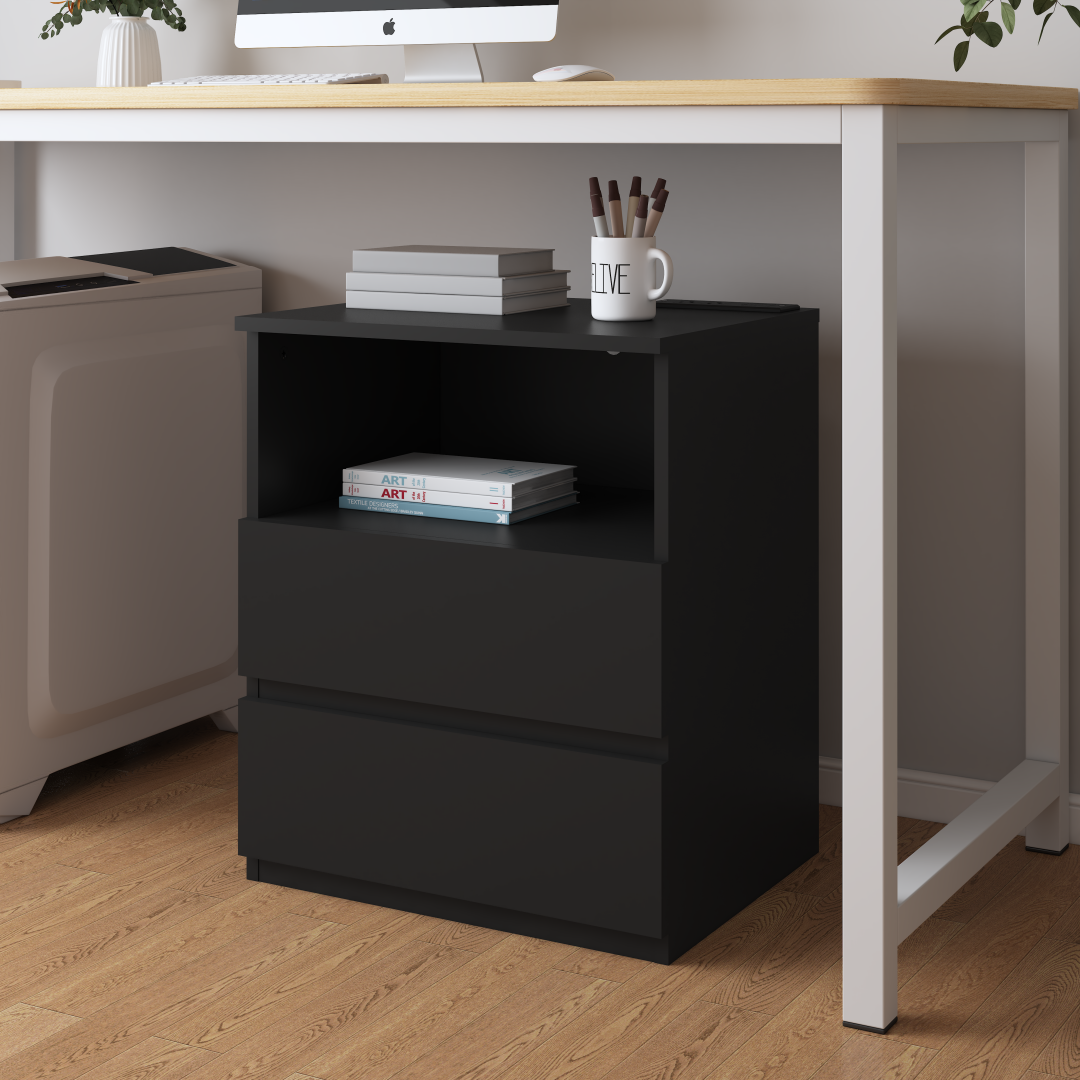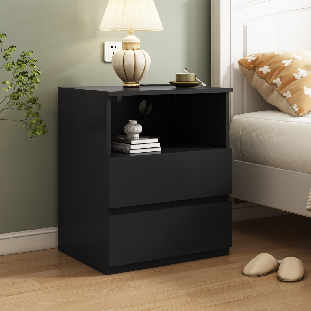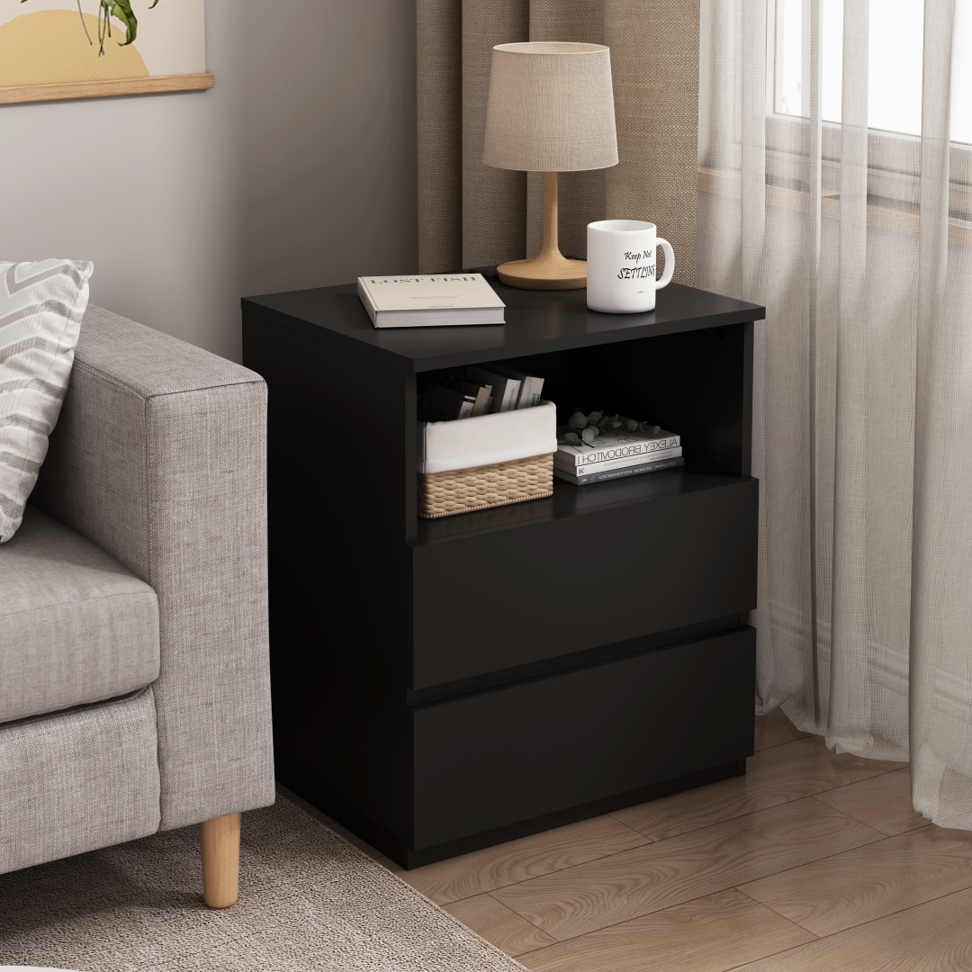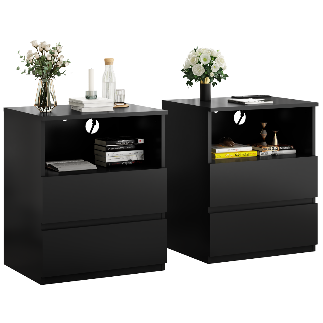 Product Name:(Set of 2)End Table with Fast USB C Charging Station, Sofa Side Table with 2 Drawers, Large Storage Modern Wood Storage Cabinet for Living Room,Bedroom,Office, Black