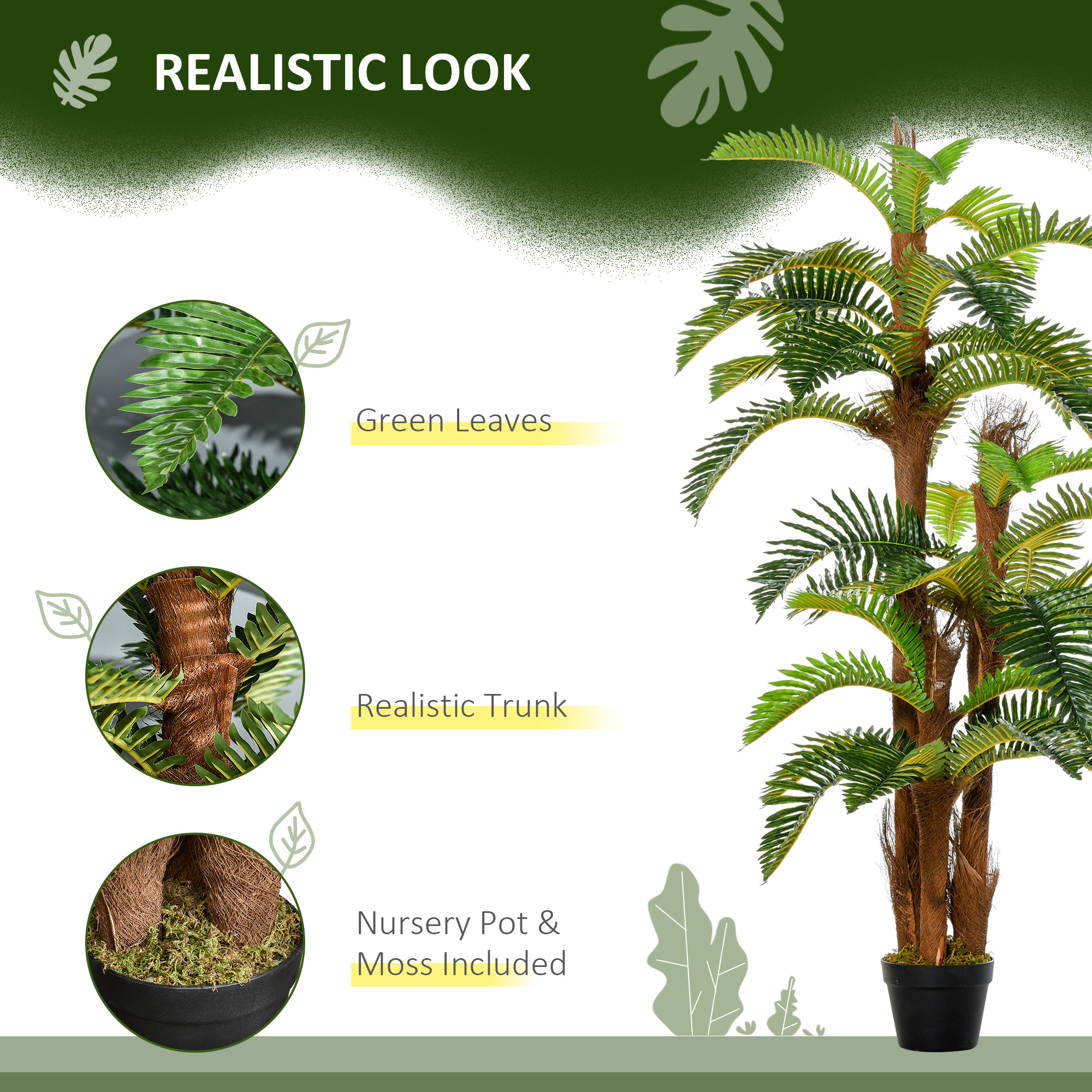 Bring beautiful greenery into home and outdoor areas, without the upkeep - pick this artificial tree, from for a breath of life this season and beyond. It's made from quality plastic for a long life and boasts a realistic colour and texture. The artificial plant design means zero maintenance too, so it will keep looking the same even without any water. Finished with a cement-filled pot so it stands proud where it stands.
